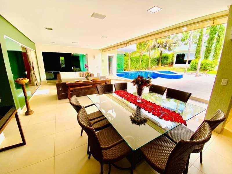 São 775m2 construídos dentro de 3.260m2 de lote, sobrado conta com aquecimento solar integrado para toda residência, automação no jardim, poço artesiano, 4 vagas de garagens coberta, salão de festas e espaço para festa com quiosque, entregue todo mobiliado. . Suíte Master com closet varanda e Terraco . Sala magnífica, integrada com sala de jantar e estar, Sobrado bem arejado e com ótima iluminação natural. . 3 cozinhas planejadas, sendo 1 no sobrado, 1 no salão de festa é 1 na á;rea gourmet. . Amplo quintal, com muito espaço verde e 100% privativo . Localização privilegiada no condomínio, próximo ao lago . Condomínio com Área de Lazer INCRÍVEL, muito verde, pistas de caminhada, LAGOS EXCLUSIVOS para os moradores!!! . Agende uma visita e conheça melhor todos os detalhes deste imóvel.