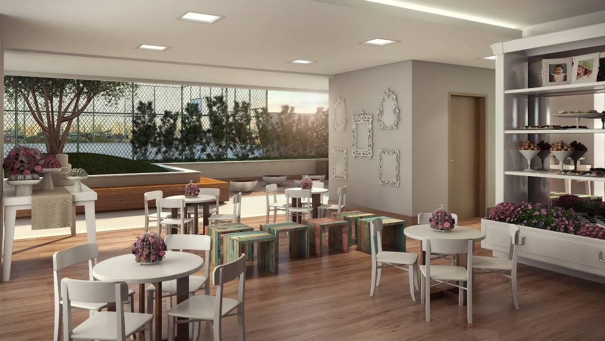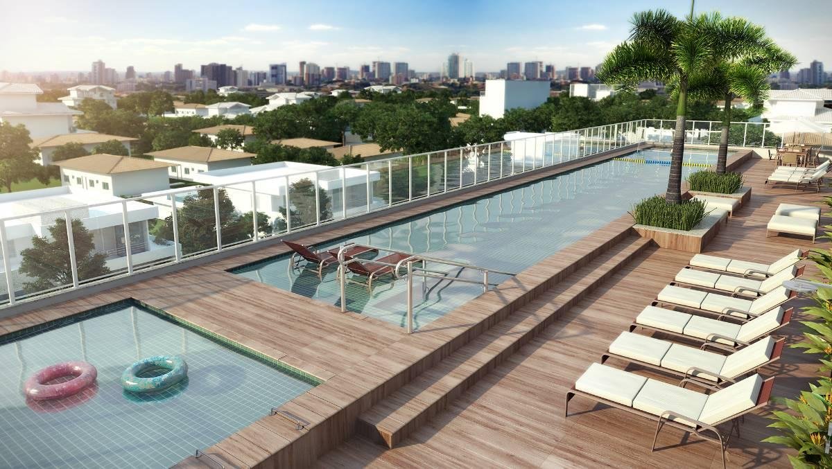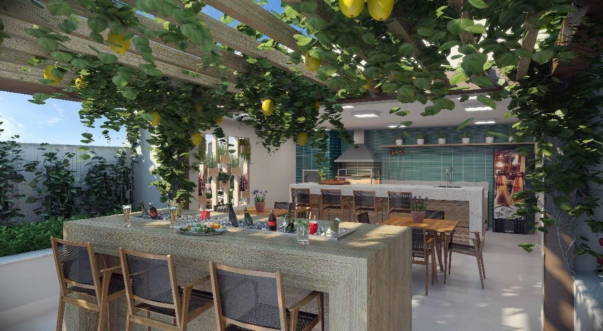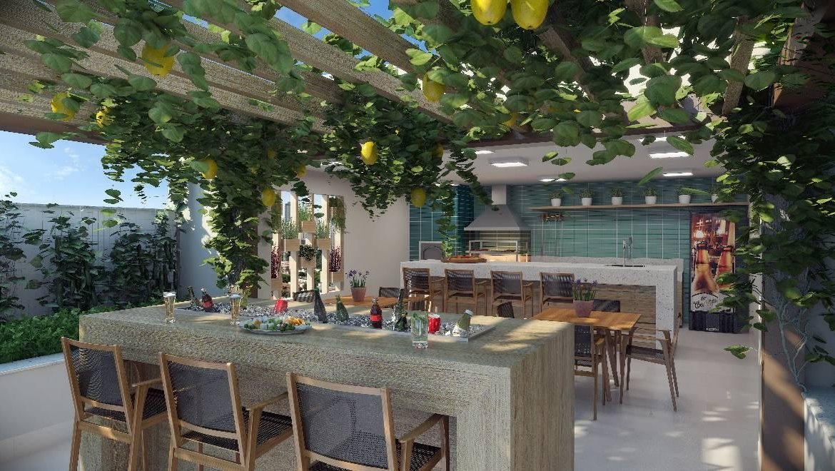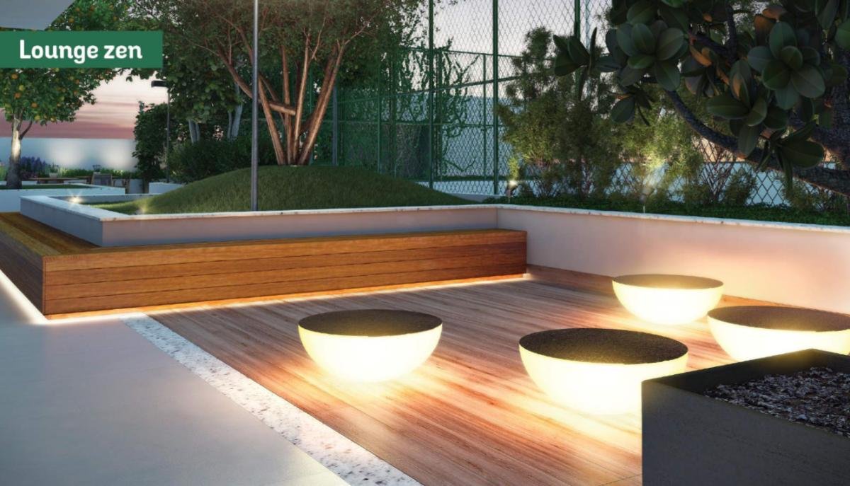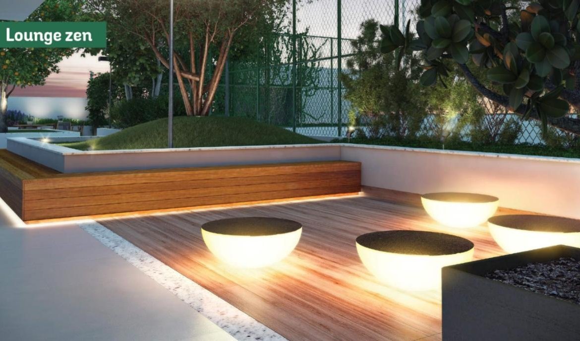 Constituído de fitness, pilates, varanda fitness, lounge gourmet, ducha, descanso, floreira, varanda jogos, espaço mulher, varanda espaço mulher, fraldário, salão de festas, salão de festa kids, lounge salão de festas, espaço gourmet, varanda gourmet, WC PNE feminino, WC PNE masculino, WC feminino, WC masculino, brinquedoteca, DML, piscina adulto com deck molhado e biribol, piscina infantil, deck solarium, ducha com lava pés, plataforma PNE de acesso ao deck solarium, escada de acesso ao deck solarium, lounge zen, playground, quadra poliesportiva, pomar, churrasqueira gourmet, lounge churrasqueira, horta, floreiras.