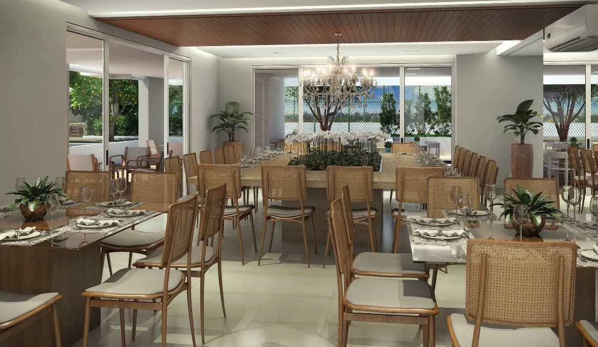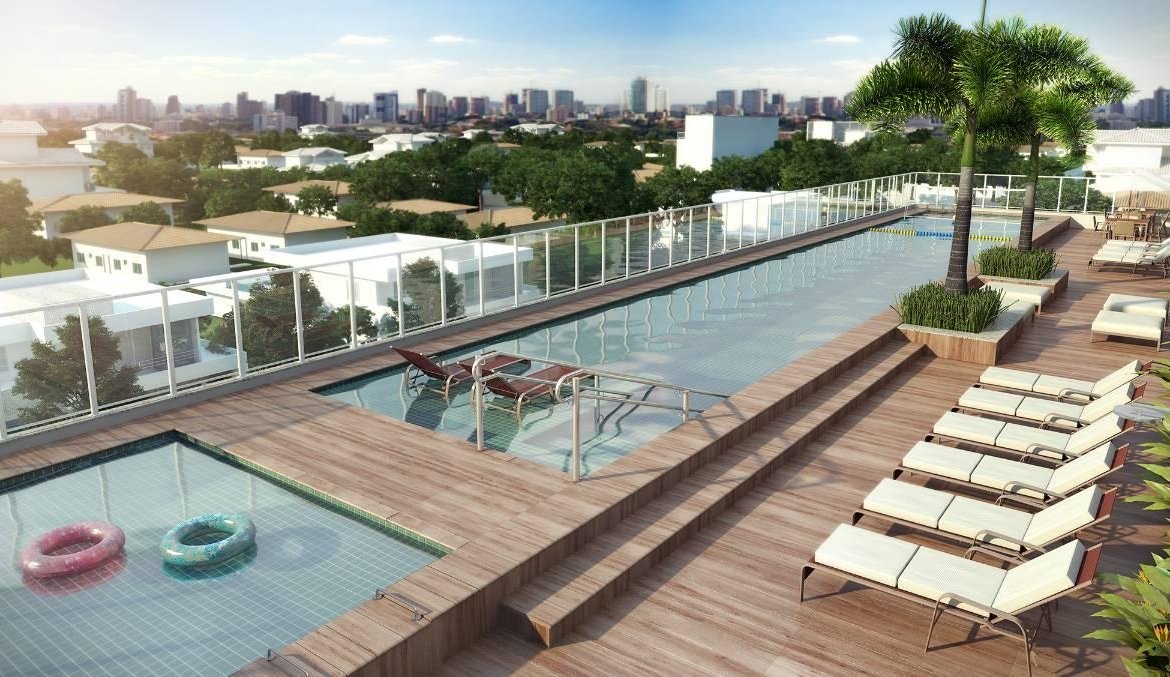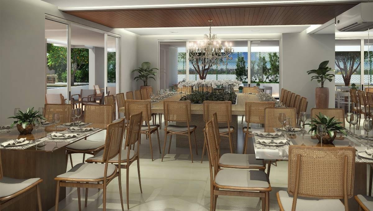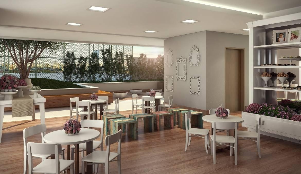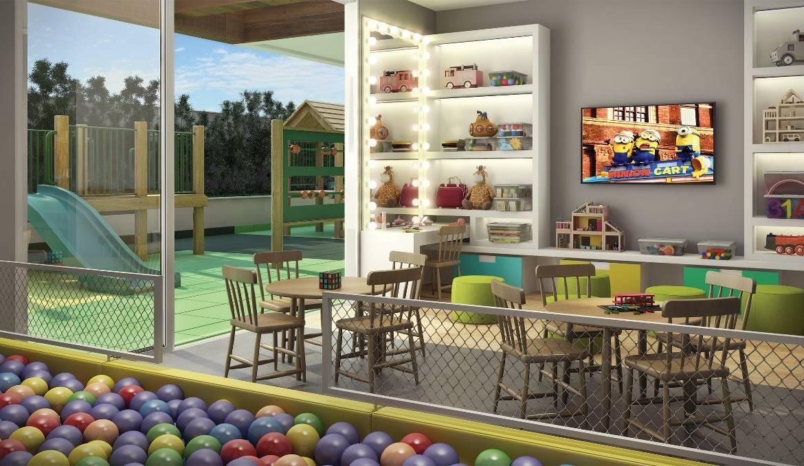 Constituído de fitness, pilates, varanda fitness, lounge gourmet, ducha, descanso, floreira, varanda jogos, espaço mulher, varanda espaço mulher, fraldário, salão de festas, salão de festa kids, lounge salão de festas, espaço gourmet, varanda gourmet, WC PNE feminino, WC PNE masculino, WC feminino, WC masculino, brinquedoteca, DML, piscina adulto com deck molhado e biribol, piscina infantil, deck solarium, ducha com lava pés, plataforma PNE de acesso ao deck solarium, escada de acesso ao deck solarium, lounge zen, playground, quadra poliesportiva, pomar, churrasqueira gourmet, lounge churrasqueira, horta, floreiras.