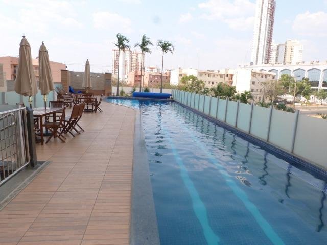 Piscina com raia semiolímpica (25 metros), aquecida e borda infinita;