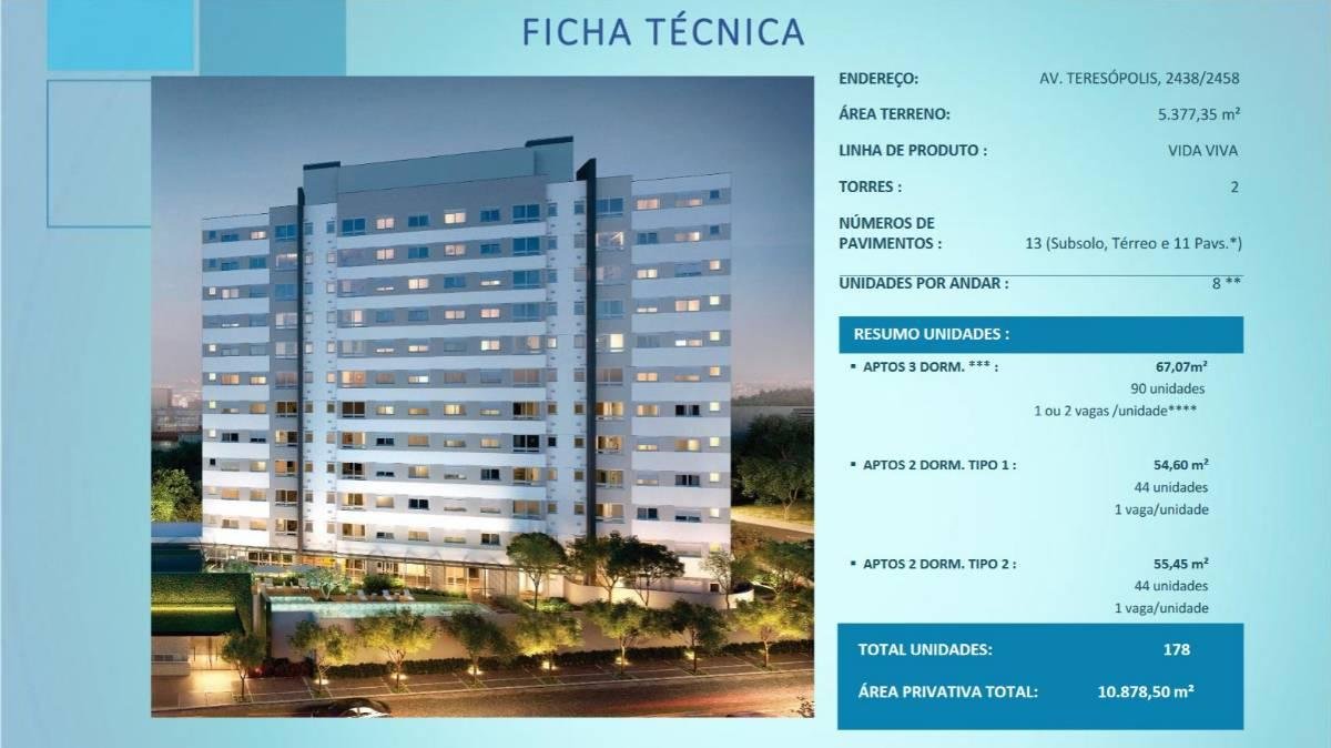 Apartamento 502, de 67 metros quadrados localizado no bairro Teresópolis com 2 quartos sendo 1 suíte e 2 banheiros e uma vaga de estacionamento; apenas alguns instantes de escolas, supermercados, restaurantes e shoppings e conveniências.