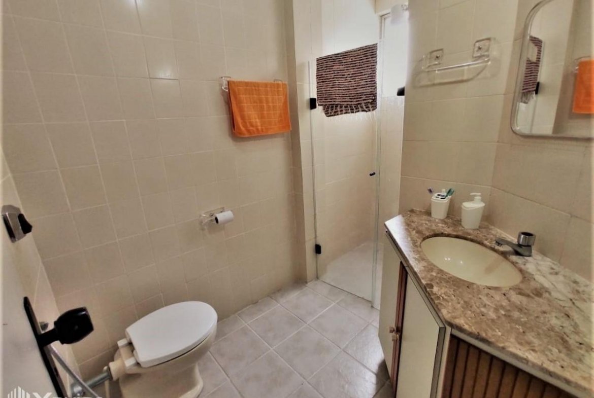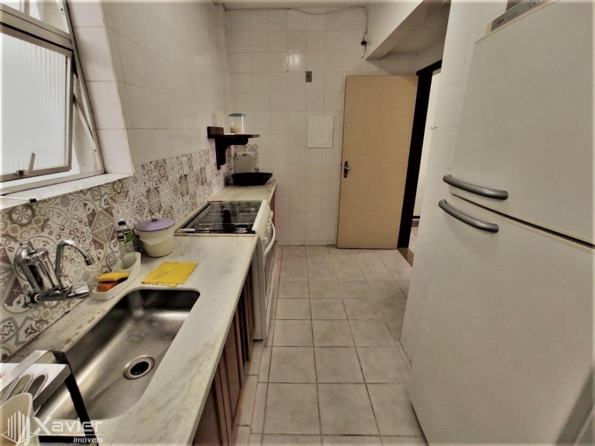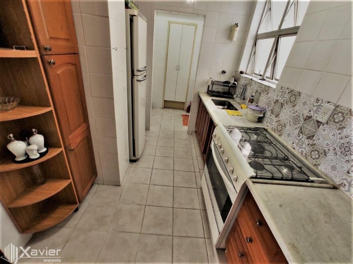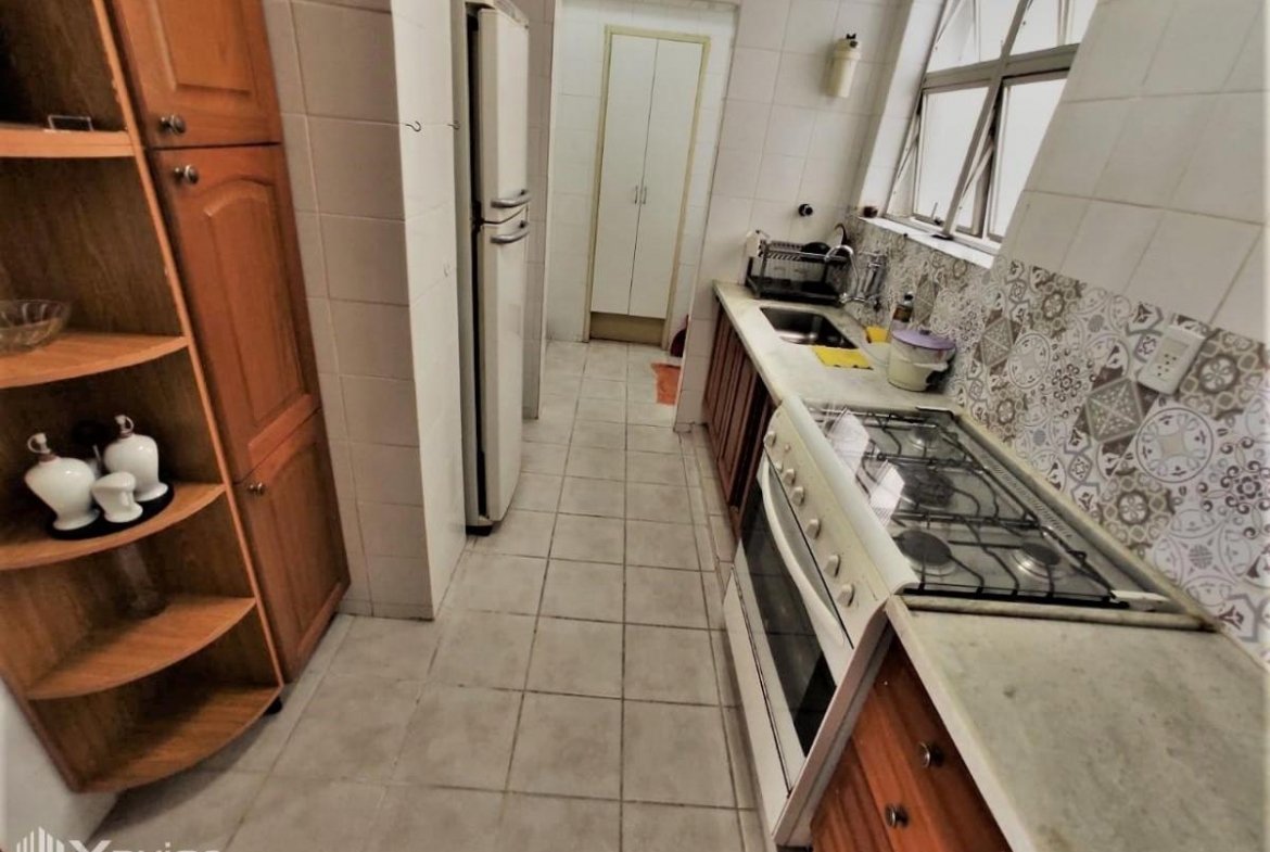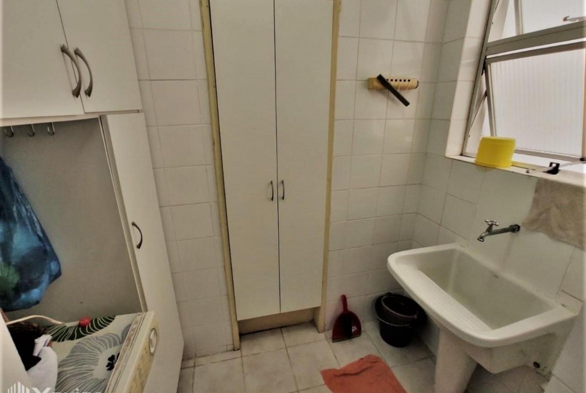 Apartamento composto de 2 quartos, sala com 2 ambientes e varanda, cozinha, área de serviço, dependência completa de empregada e 1 vaga de garagem.