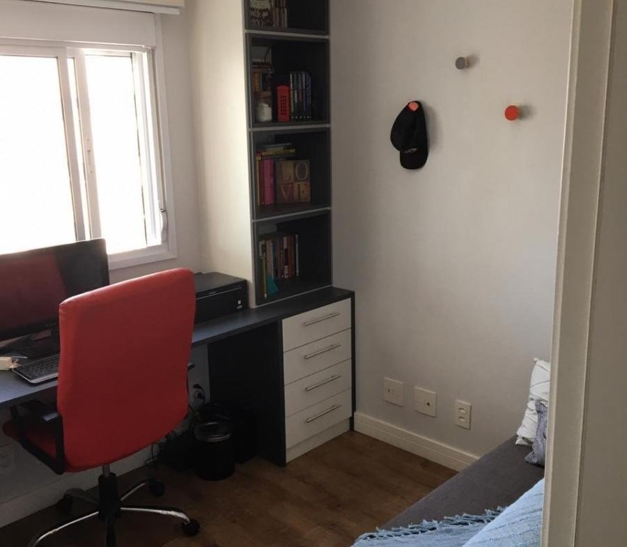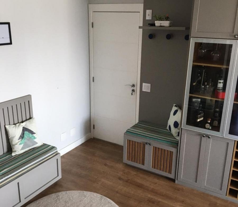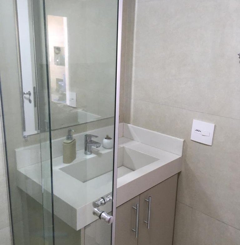 Apartamento 73 m² com 2 Quartos (1 suíte) e 2 banheiros, sala, cozinha e varanda com churrasqueira, andar alto (12º), vaga de garagem.