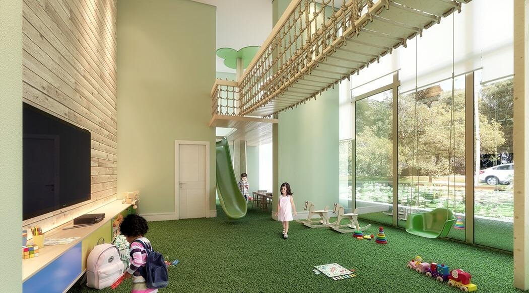 As vagas de garagem estarão localizadas em um edifício garagem de 5 andares, com amplos espaços para os veículos e estações de recarga para carros elétricos. O teto desse edifício é verde e é onde está localizada a área de lazer. Pensando na sustentabilidade, também será possível reutilizar a água para irrigação e para abastecer o espelho d´água que contorna o empreendimento.