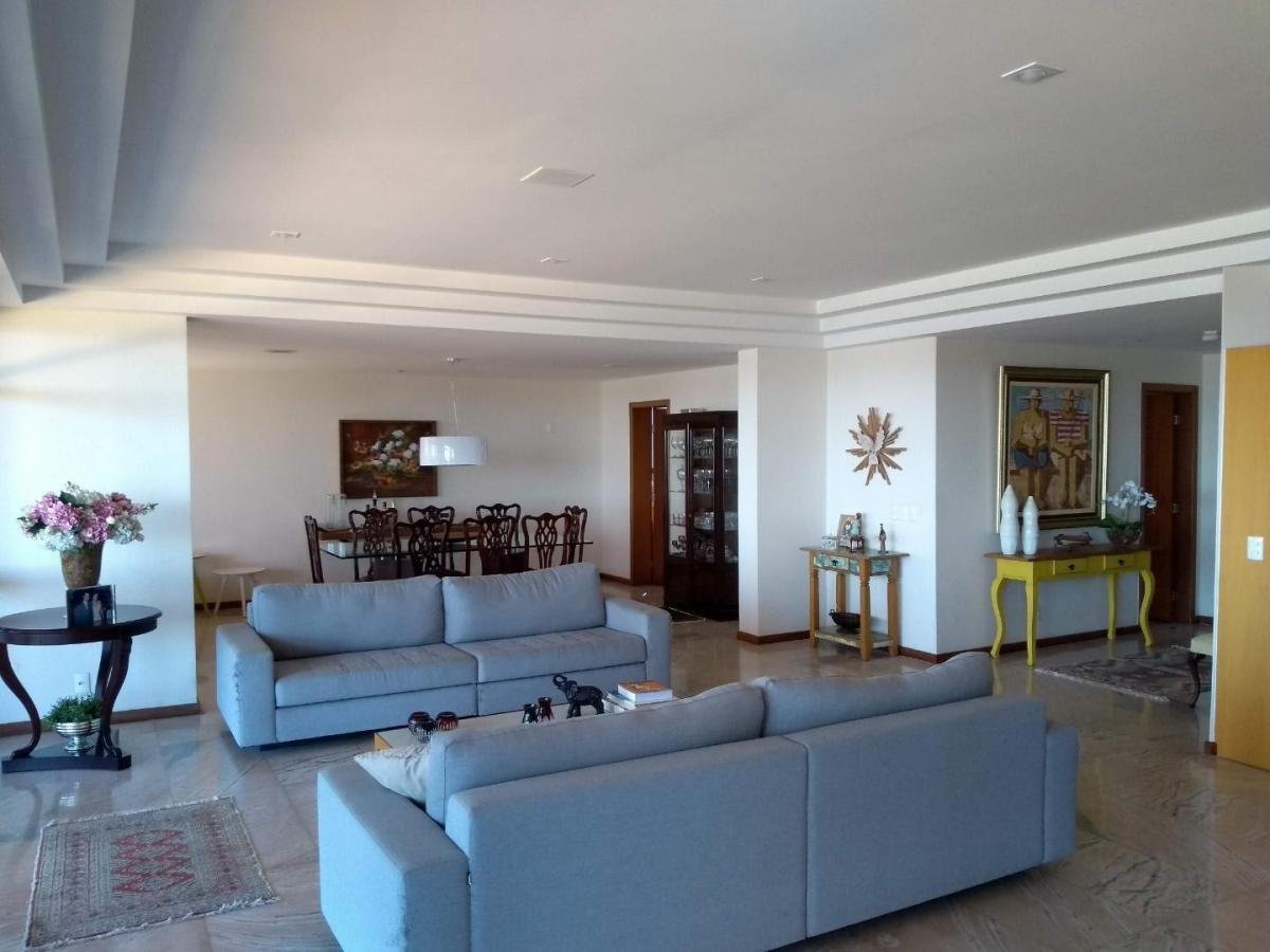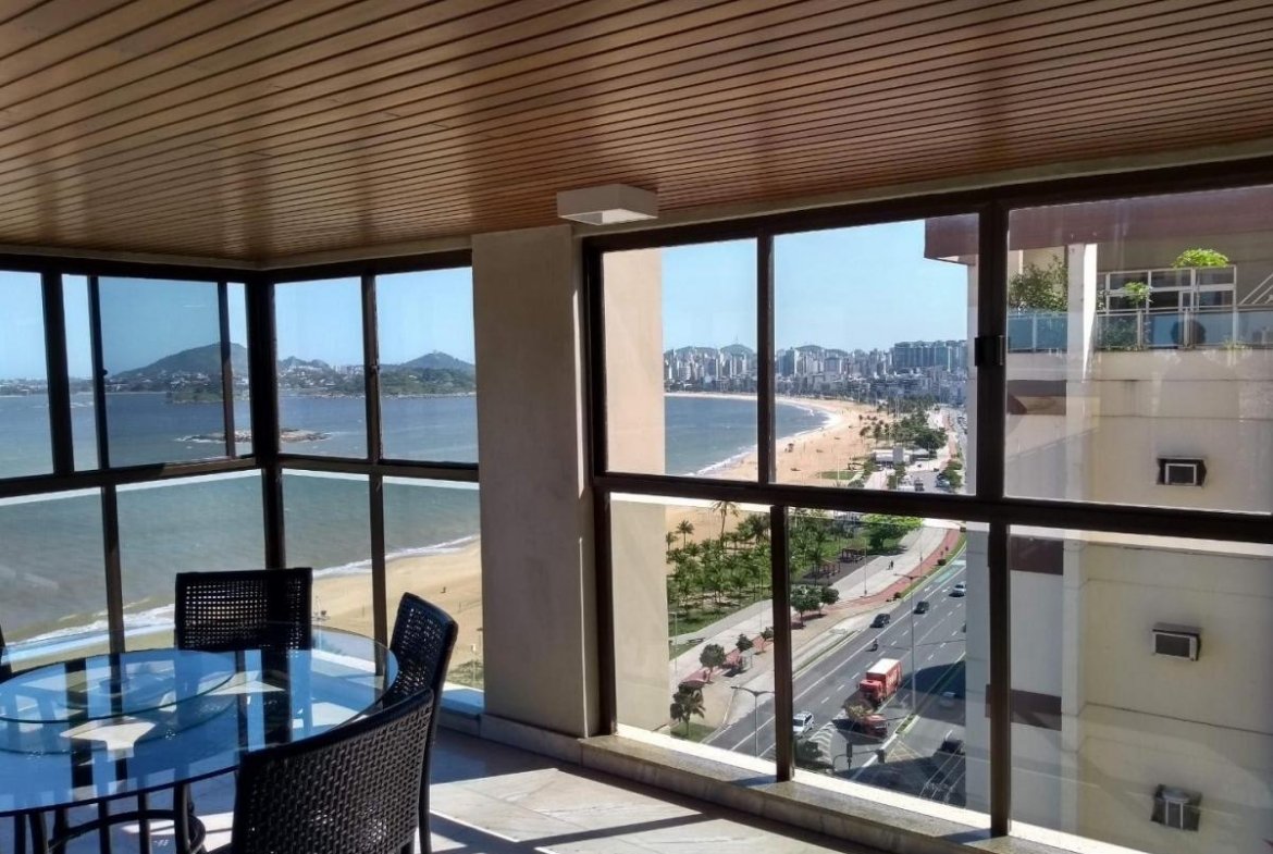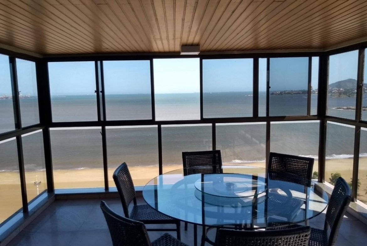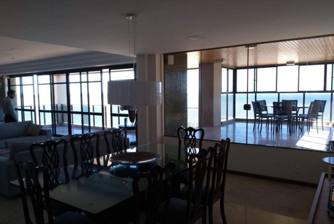Apartamento amplo com:- Sala com 4 ambientes e conectada com a varanda com fechamento- 4 quartos sendo todos suítes- Sendo 1 Suíte Máster com 30 mts² e closet- Varanda ampla de frente para o mar- Amplo apartamento- Armário em todos os quartos- Cozinha Ampla- Área de Serviço- Dependência Completa de Empregada – DCE- 3 Vagas cobertas independentes. Prédio com lazer e acesso ao clube com:- Piscina, – Sauna, – Quadra de tênis, – Bar, – Restaurante, – Playground. Agende visita a este apartamento de alto padrão com vista eterna para o mar e traga a sua proposta.