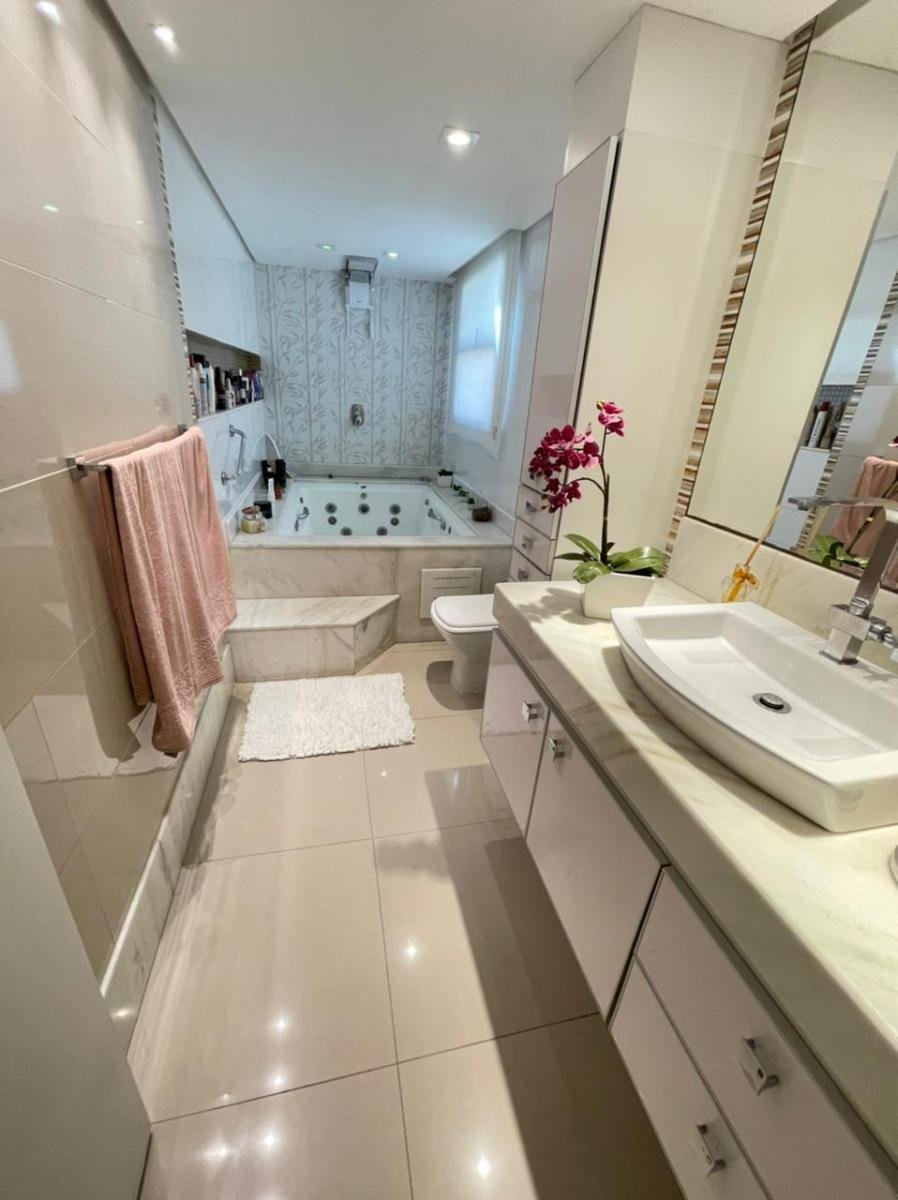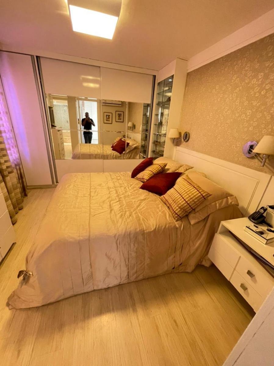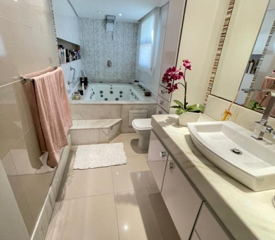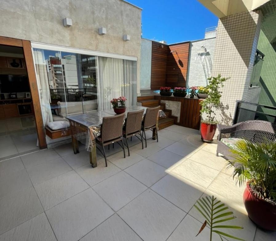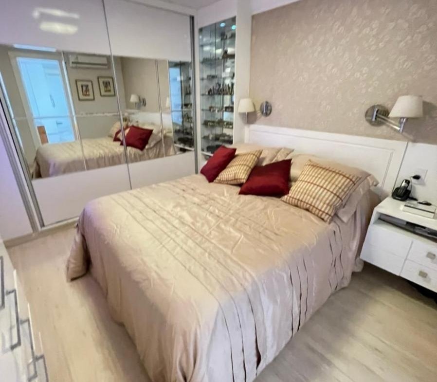 – 234m2; – 03 quartos c/ 02 suítes; – Duplex; – Piscina c/ cascata; – Área gourmet completinha; – Décimo Andar; – Sol da manhã;