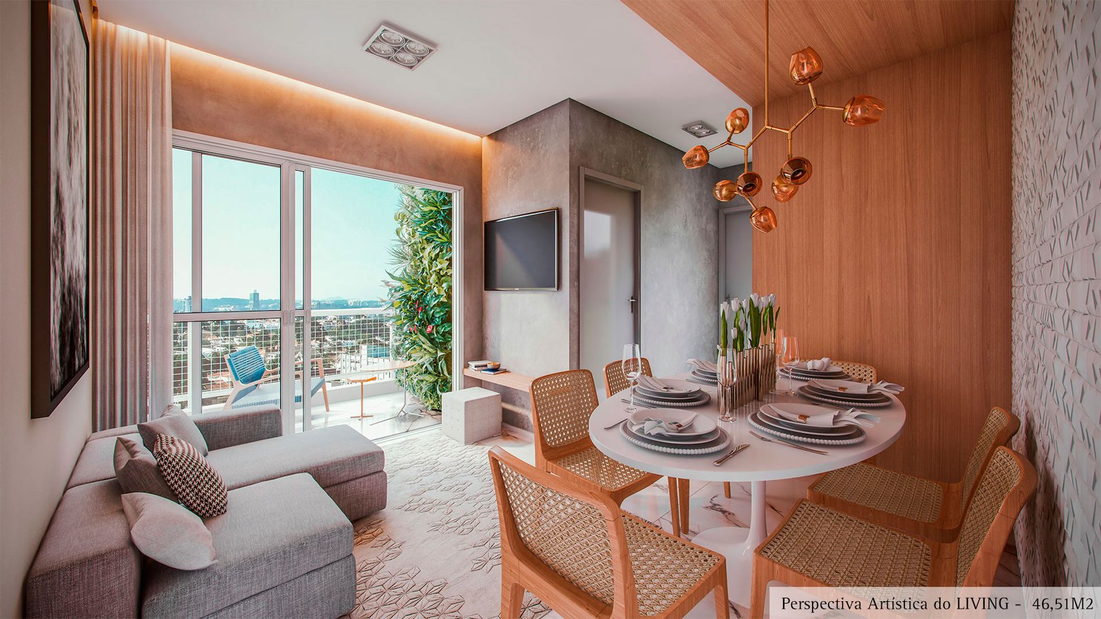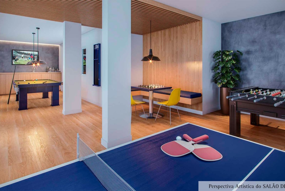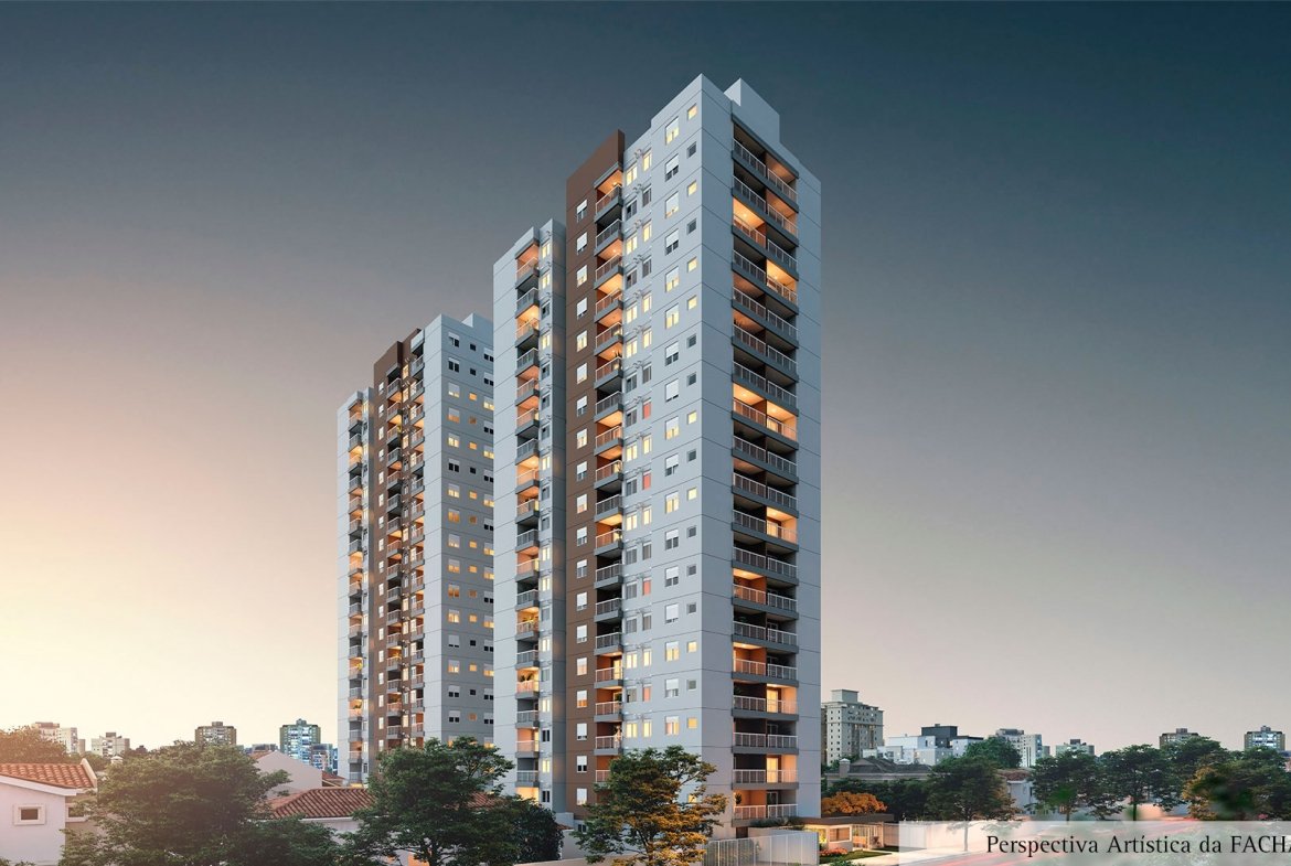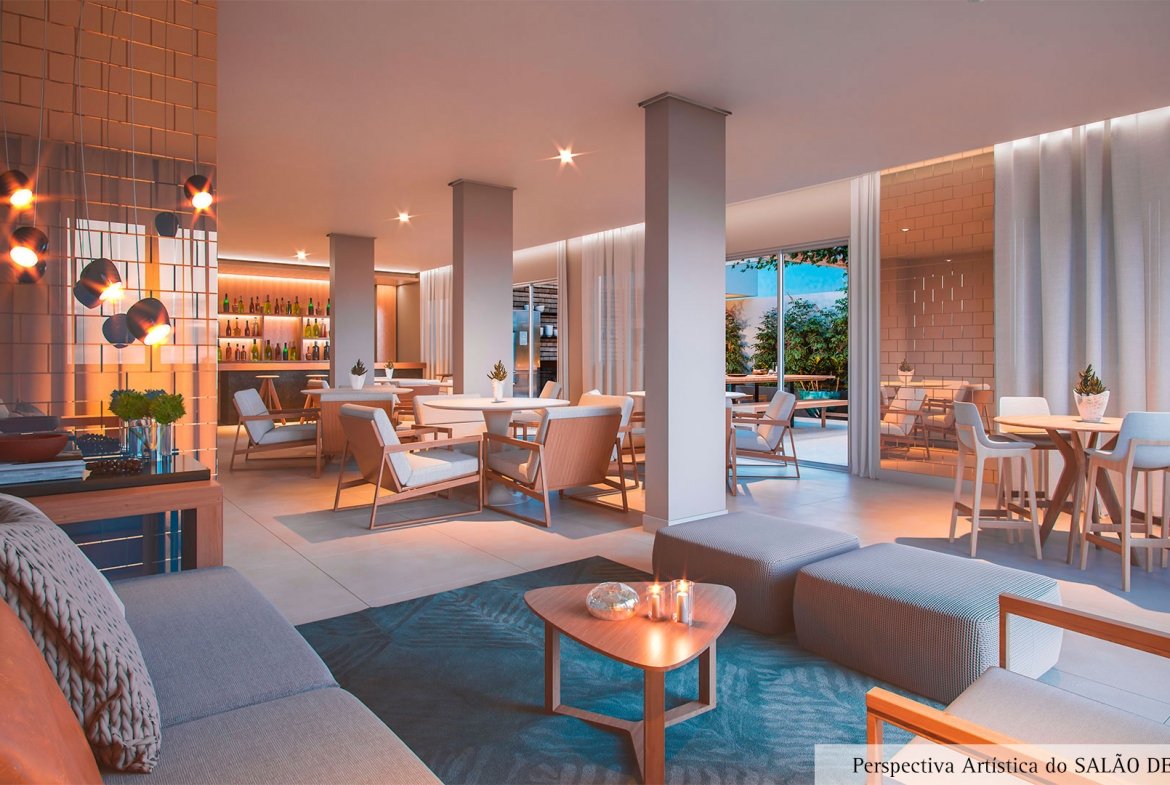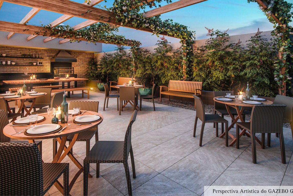46 metros bem distribuídos em planta de 2 dormitórios, terraço grill e 1 vaga coberta.