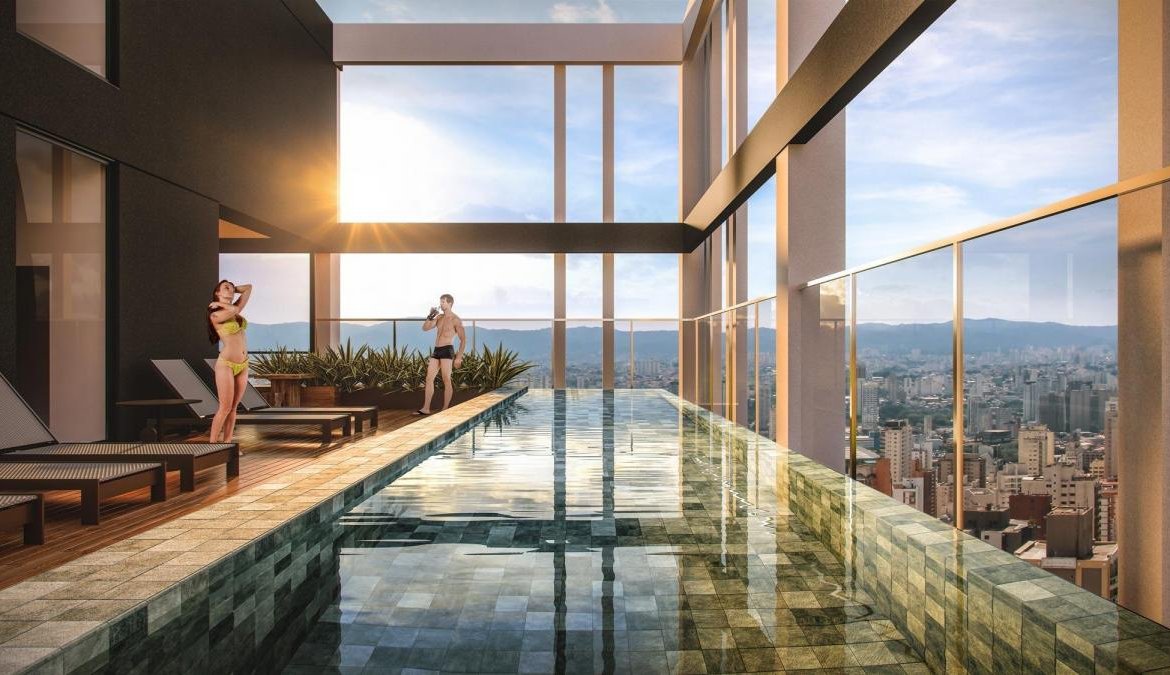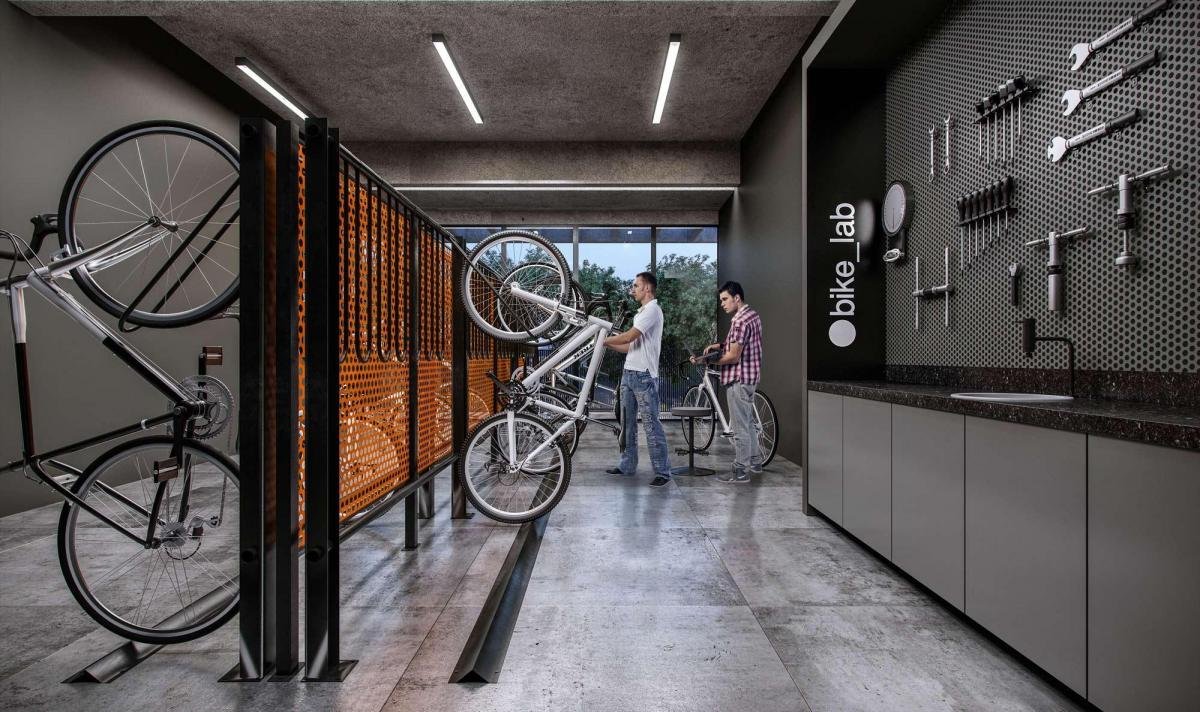 Lazer completo: piscina, bicicletario, espaço goumet, salão de festas, espaço fitness, coworking.