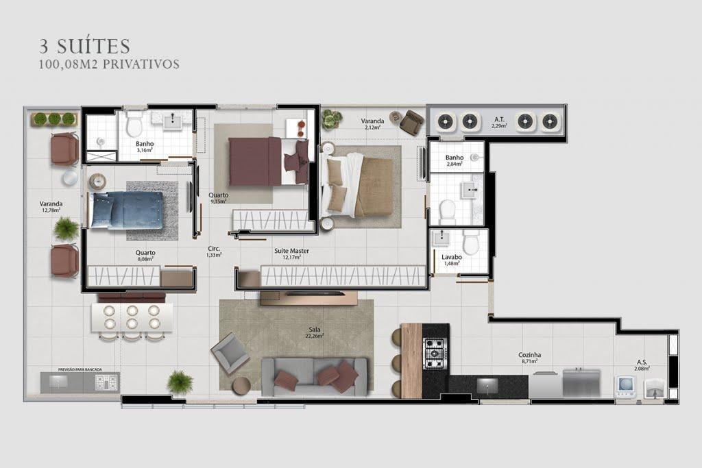 Apartamento Lançamento 3quartos. – 100,8 m² – Vitória