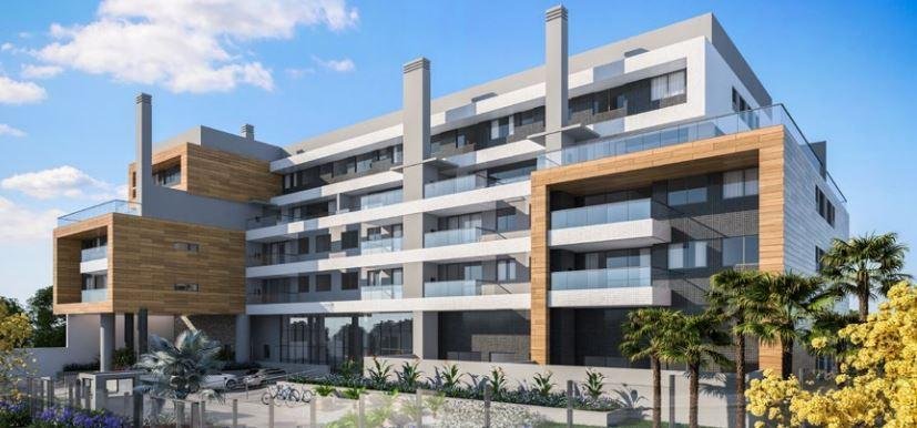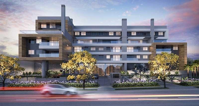 > Garden com amplo espaço externo e garagens integradas no mesmo andar