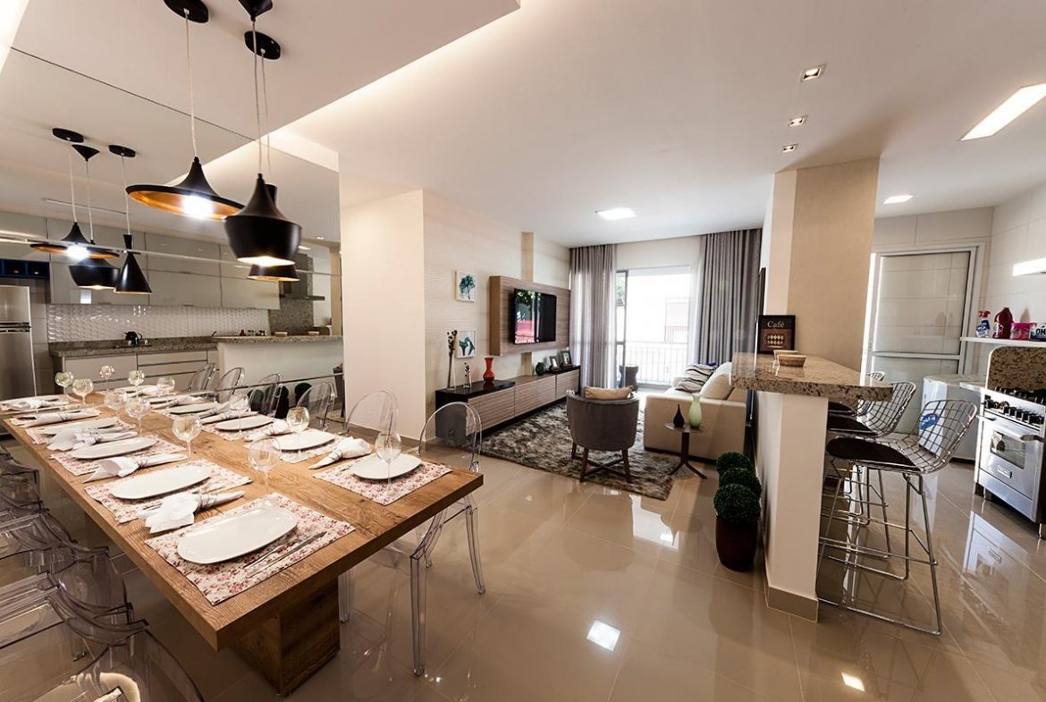 Integração sala, cozinha e varanda;