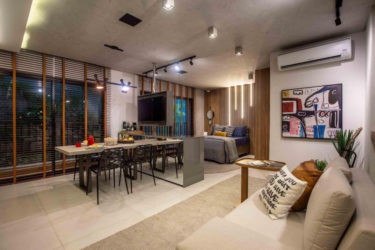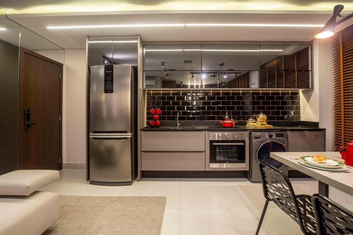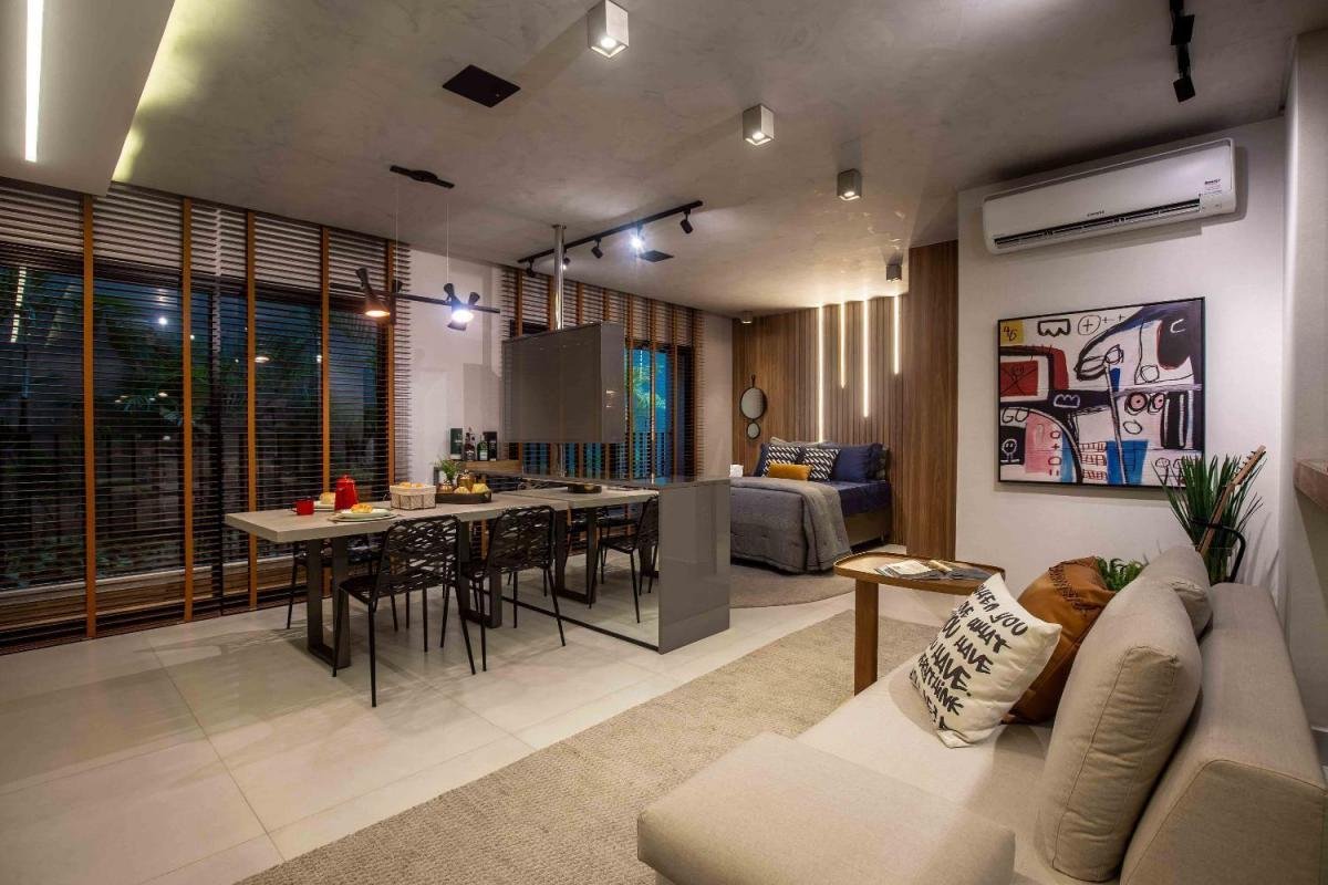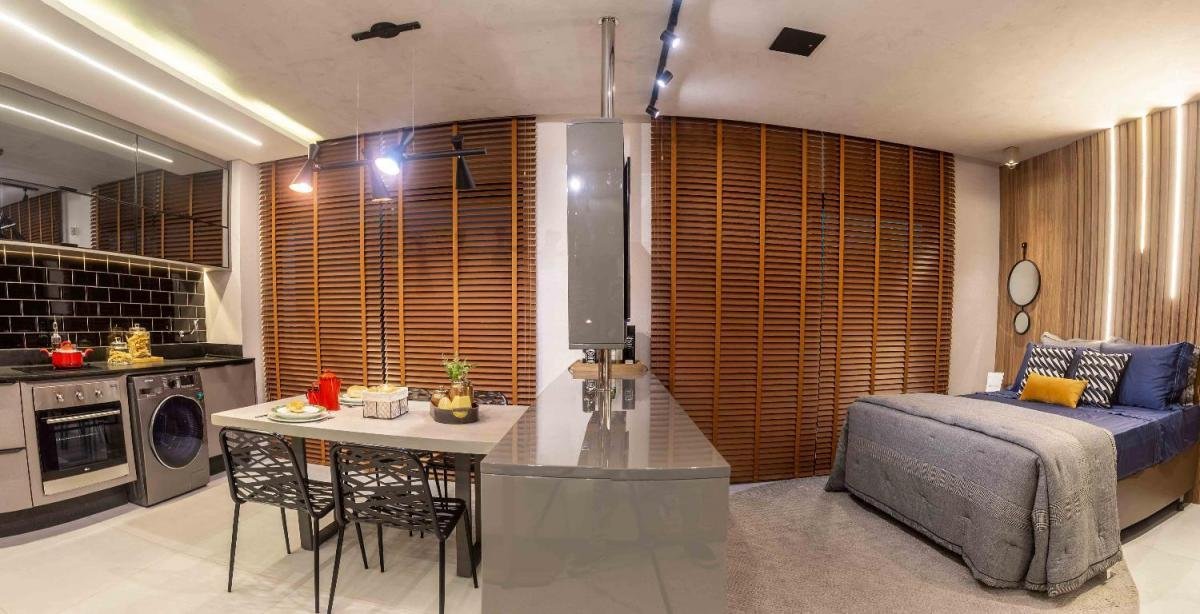 Studio com design moderno, no setor Bueno e 44m². Com cozinha tipo americana, sala, quarto, banheiro e cozinha. 1 vaga de garagem e lazer completíssimo.