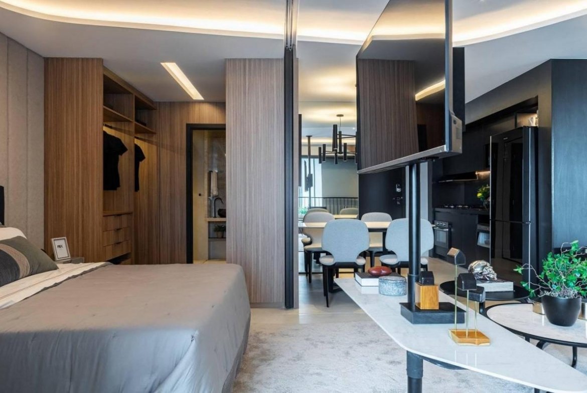 Eletrodomésticos, mobiliário, marcenaria, luminárias, ar-condicionados e ambientação básica.