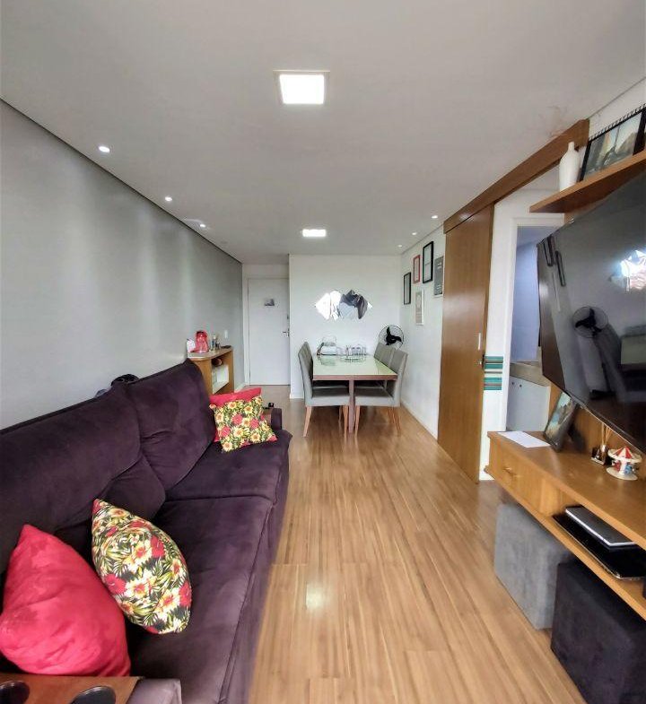 » Sala ampla para dois ambientes com belo piso em laminado, rebaixamento em gesso e iluminação indireta com dicroícas;