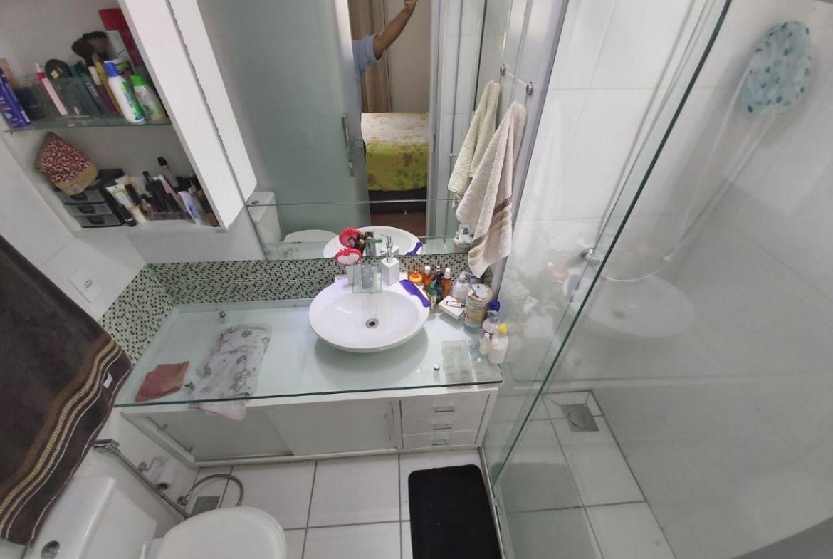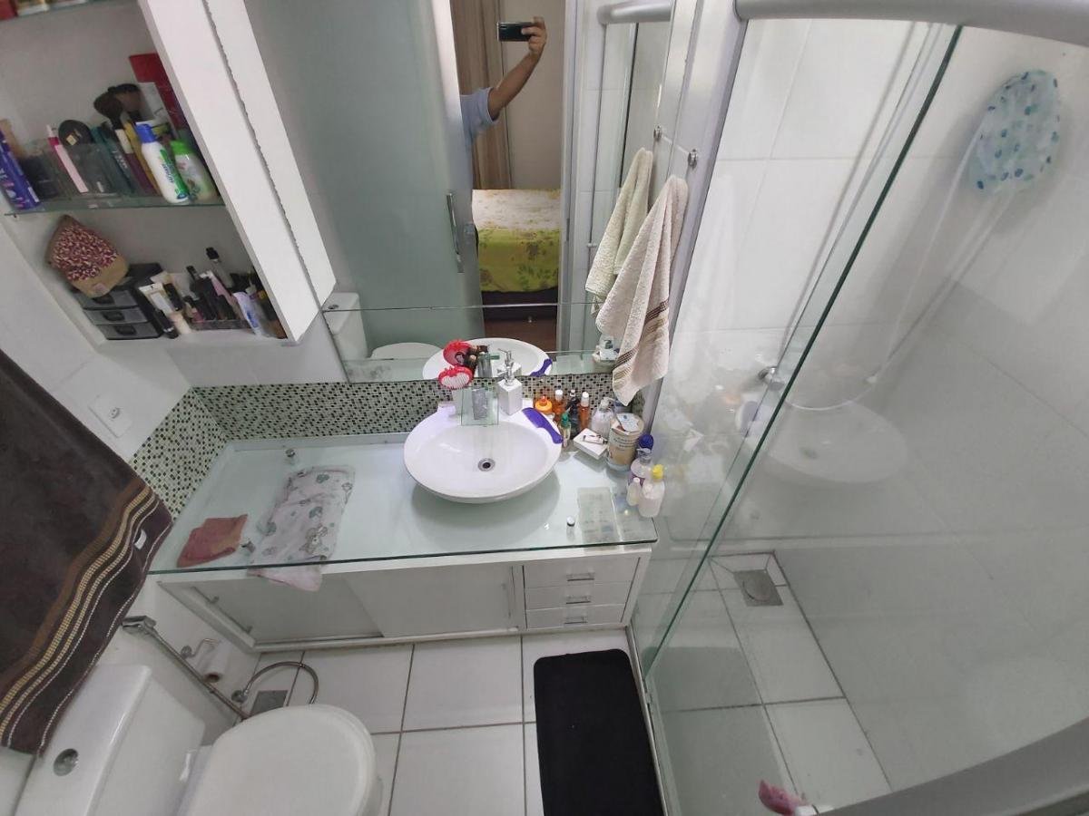 » Banheiro da Suíte com box em vidro temperado 8mm incolor, armário planejado e cuba de apoio;