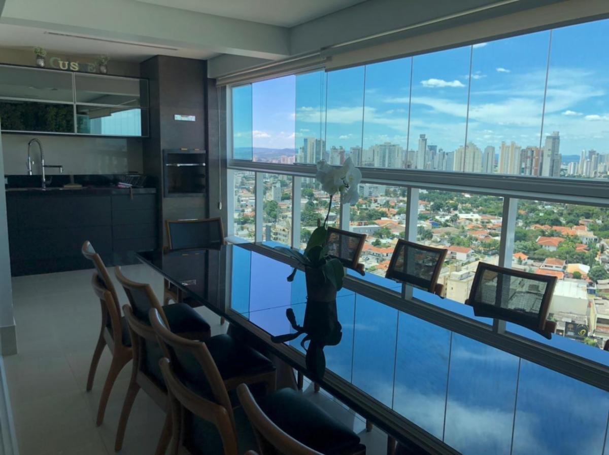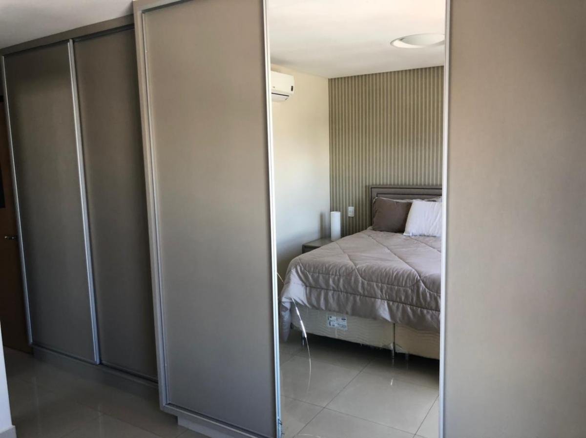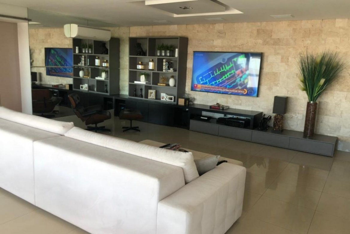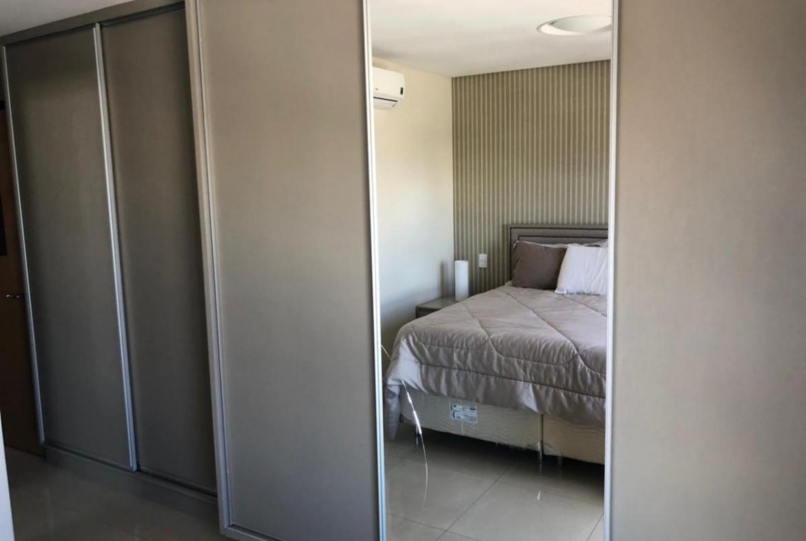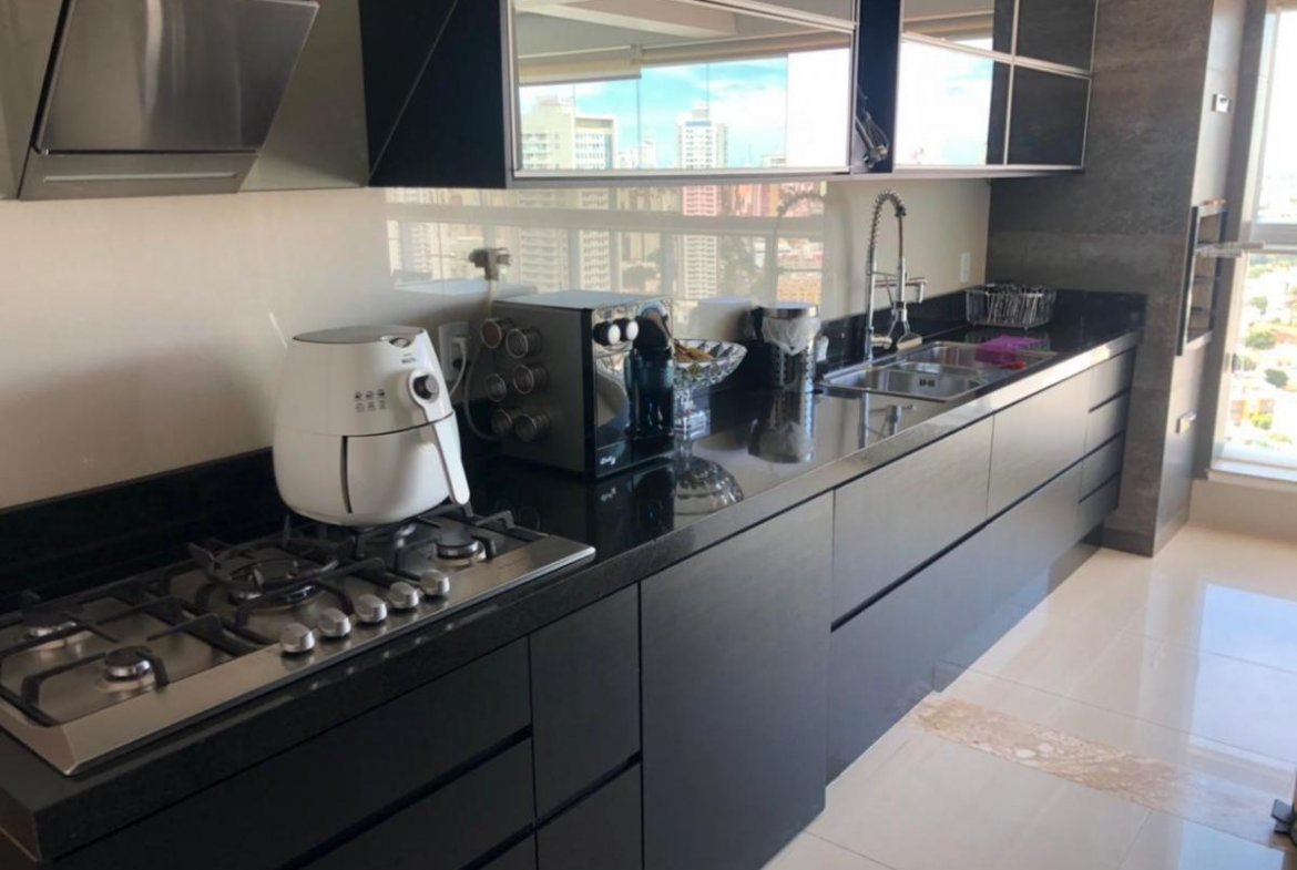 Apartamento rico em móveis planejados e cortina persiflex.
