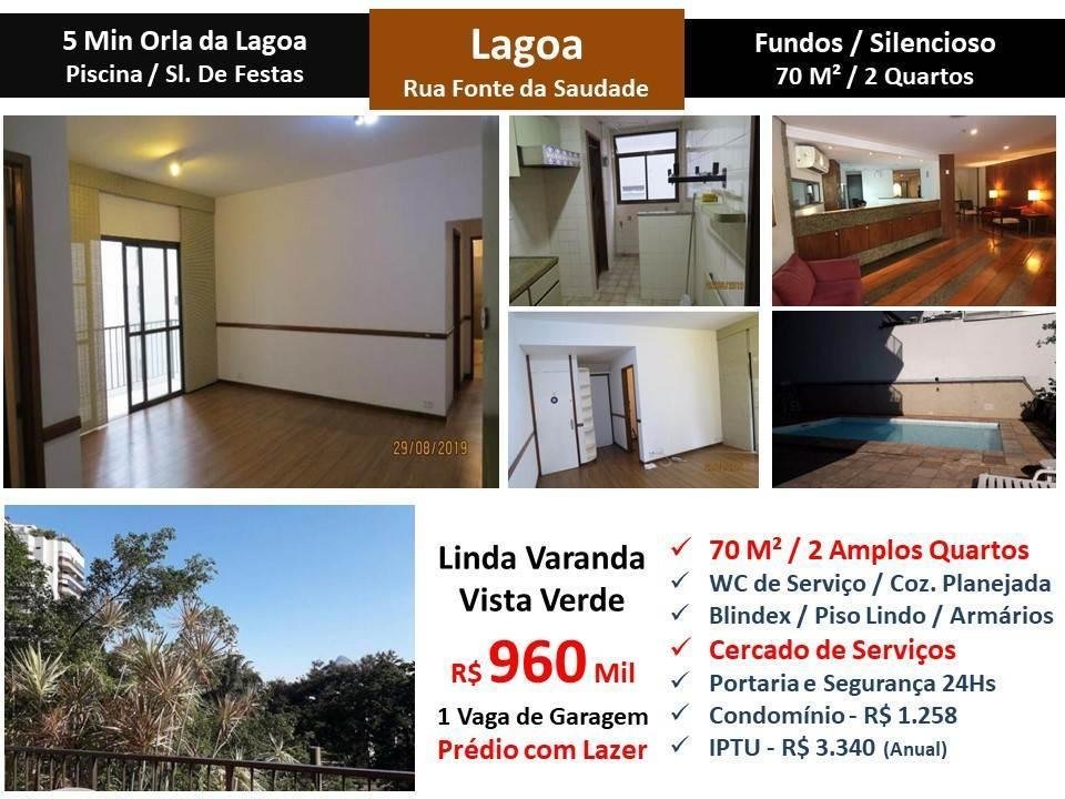 Maravilhoso apartamento de fundos silencioso com vista para o verde na Fonte da saudade na Lagoa. São 70 m2 com sala, linda varanda, 2 amplos quartos, banheiro, cozinha planejada e banheiro de serviço. Armários. 1 vaga de garagem. Prédio cercado de serviços com lazer e portaria com segurança 24 horas localizado a 5 minutos da orla da Lagoa.Elt;br> <br><br><br>Chave do anúncio: myH8MHkSlfuH86LH – 04/06/2021