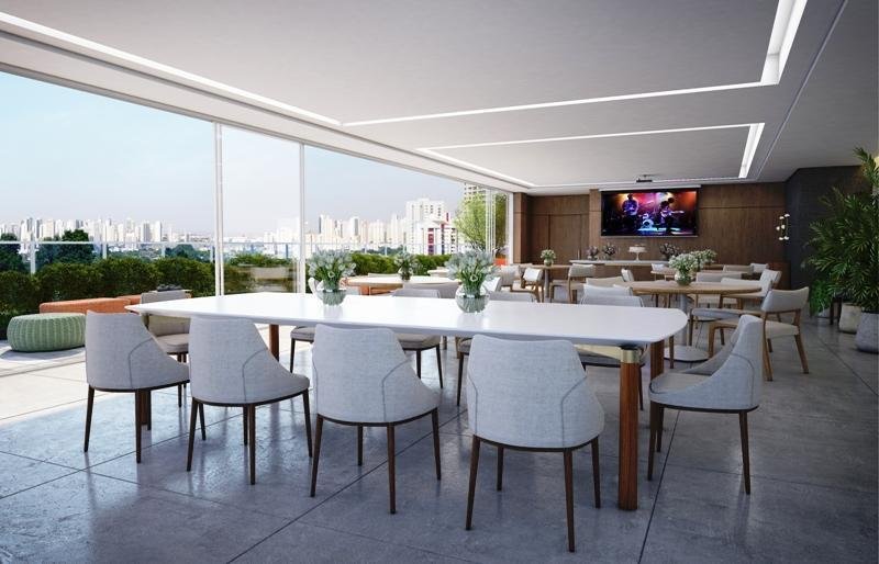 A área comum foi planejada para promover momentos de saúde e lazer integrados com a natureza. Por isso, o salão de festas e a academia possuem um terraço com vista para o Parque, assim como a piscina coberta. E ainda conta com sauna, piscina externa, playground, brinquedoteca e churrasqueira gourmet.