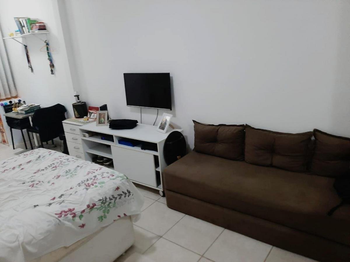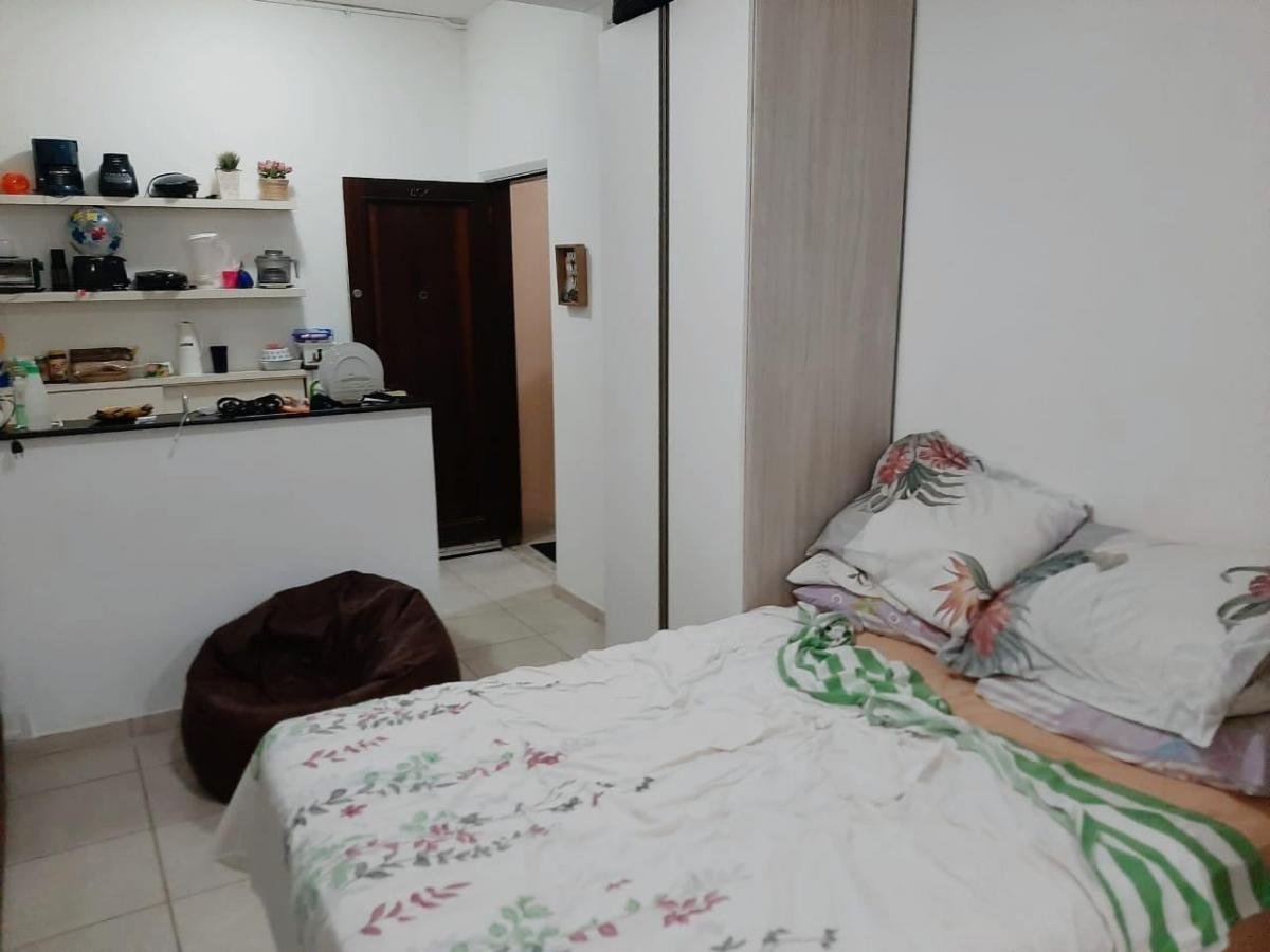 Apartamento Studio de 26m2 , reformado, com armários, piso porcelanato, banheiro amplo com box blindex, cozinha cabe tudo e padrão americana, conceito aberto. Super ventilado e arejado, andar médio.