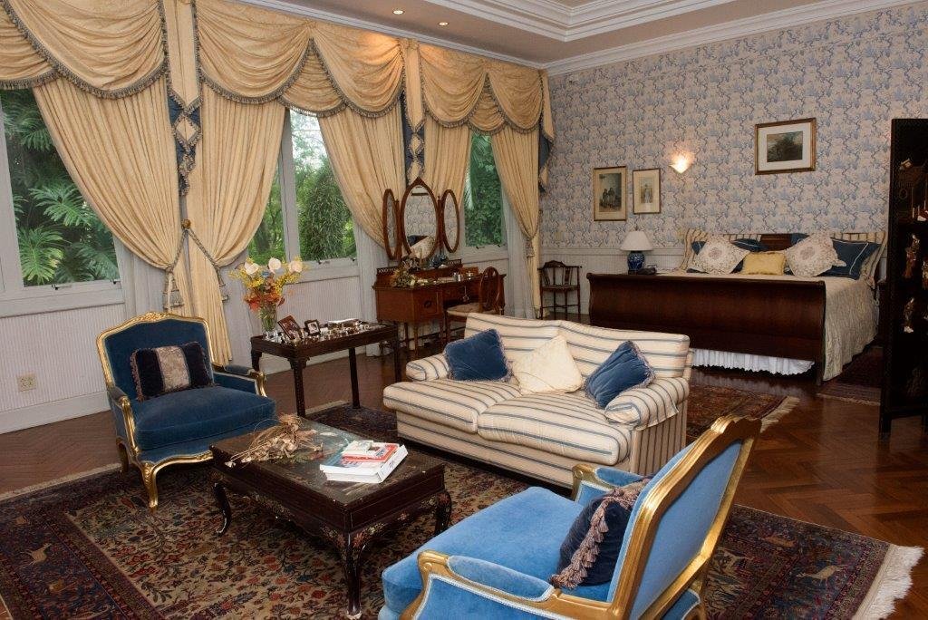 Construção impecável. Escadaria de mármore, lareira, piscina, adega em mogno.