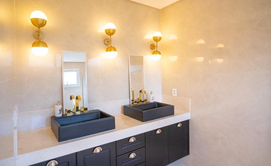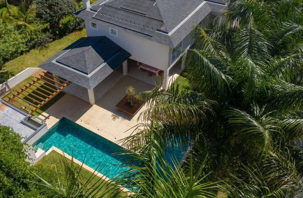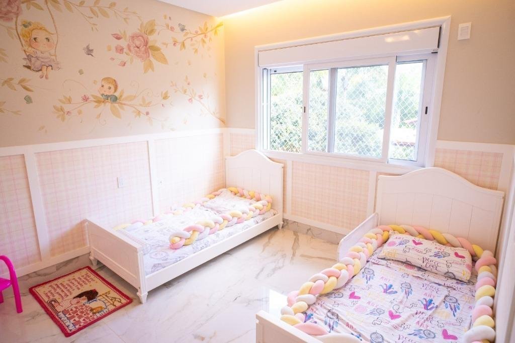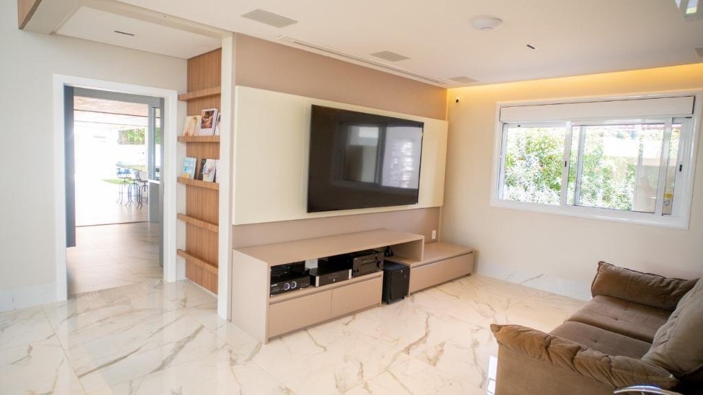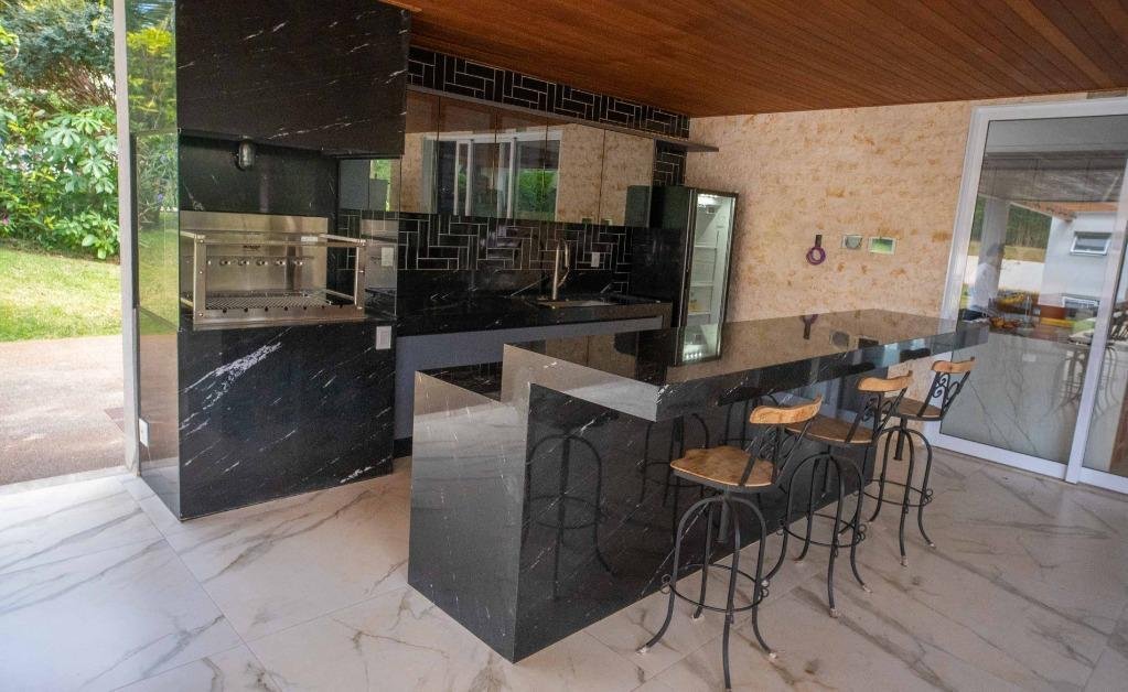 Sobrado Aldeia do Vale Rua dos Barus, Quadra 14 A, Lote 03. Lote: 1.500 m² (25 x 60) Pavimento Térreo: 298,20 m² Pavimento Superior: 160,00 m² Área Total Construída: 458,20 m² Lindo Sobrado no condomínio Aldeia do Vale com Lote de 1.500 m² e 458,20 m² de área total construída. Projeto imponente e bem elaborado pela arquiteta Tereza Cristina, com fachada luxuosa em estilo clássico e muita área verde. Sala de estar e jantar com pé direito duplo integrada com o home cinema e um lavabo maravilhoso. Ampla Varanda Gourmet com + de 60 m² e uma imponente churrasqueira com acesso para cozinha com despensa e uma dependência de empregada completa. Piscina com prainha, SPA com hidromassagem, espaço de descanso com banco e uma jabuticabeira. O pergolado de madeira integra o lazer e a sauna com banheiros masculino e feminino. A garagem para 02 carros esta preservada com acesso lateral e fica ao fundo da casa, próximo a área de churrasco, para ampliar o ambiente em dias de festa. Possui também no Térreo 01 suíte de apoio. 04 suítes no Pavimento Superior, sendo 01 suíte máster com closet e amplo banheiro com hidromassagem + 03 suítes plenas. Circulação ambiente para roupeiro e espaço para instalação de elevador. Diferenciais: Completa em armários (OGGI ambientes); Poço artesiano (8 mil litros de água por hora); Irrigação automatizada (reservatório de 5 mil litros); Cozinha com energia 110 e 220 volts; Varanda gourmet com 8 caixas de som; Luminárias Everglow, com dimerização; Pia da cozinha e varanda gourmet com triturador; Suíte máster com preparo para home theater (caixas no gesso); Lift da TV na varanda e banheiro máster, gira quase 360 graus; Piso inferior Portinari 100×100 e pedra do lavabo onix amarelo; Automação residencial sem fio controlada pelo celular (lâmpadas, áudio e vídeo, ar condicionado, cortinas, persianas, circuito interno e externo de TV, sauna e piscina); Piscina com aquecimento solar e iluminação, área de hidromassagem com 6 jatos; Churrasqueira a carvão com Lift Grill, de aço inox 304 marítimo com 13 espetos.
