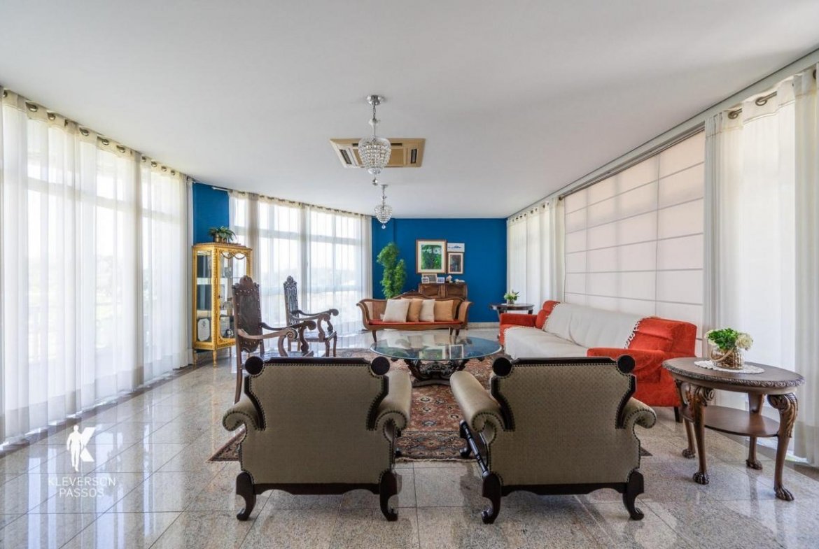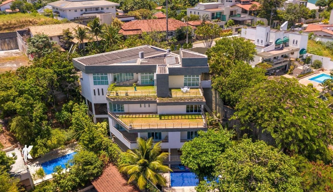 São 05 suítes, área goumert com saída para praia, 05 vagas, mirante com vista para o mar, área construída 1200m2 e um Terreno 950m2.