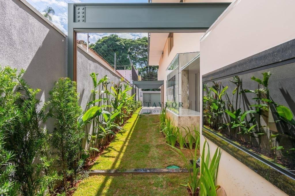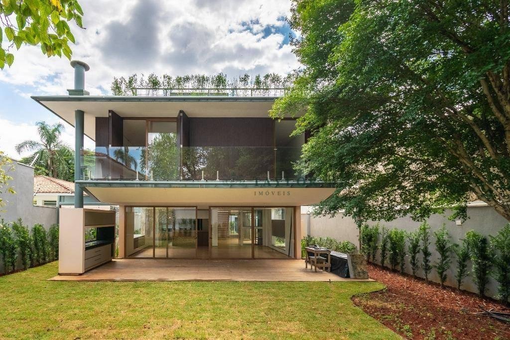 Casa nova nunca habitada, no coração do Jardim América, construída com estrutura metálica, ambientes agradáveis e super arejada com muita iluminação natural, sob um terreno de 630mt², área útil 520mt², muito bem aproveitada com três pavimentos. Hall de entrada social, elevador para atender aos três andares, iluminado por claraboia, amplo quintal com enorme jardim possibilitando a construção de uma piscina, entrada de serviço independente com dependências de empregados completo, lavanderia, escada de serviço pra atender ao segundo piso, no piso terreo possui salas de estar / jantar, escritório / Family room, lavabo, copa e cozinha, churrasqueira, no segundo piso, ficam os 3 dormitórios com suítes, a master com banheiro Sr e Sr, todas com porta sanfonadas em alumínio tipo camarão, envidraçada proporcionando muita iluminação natural, com acesso a varanda,sala home theater, no terceiro piso um amplo espaço ao ar livre com lindo jardim e um jacuzzi. A casa muito bem construída e segura com alarme, câmera, vídeo e internet, toda parte elétrica com sistema trifásico, possui ainda placas solares, tanque com capacidade de até 4 mil litros de água de reuso, e 7 vagas de garagens