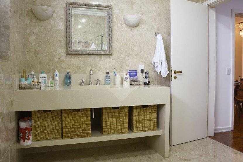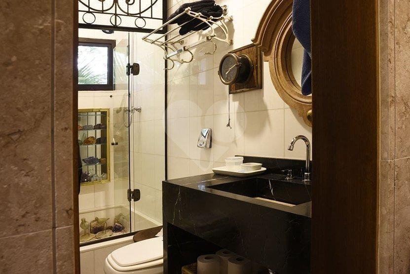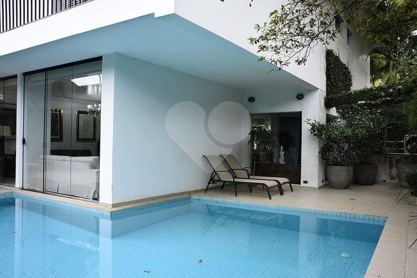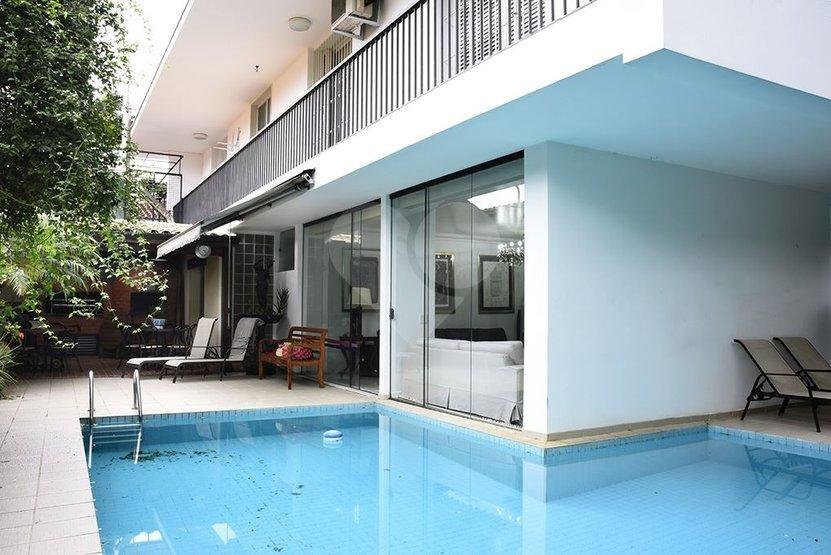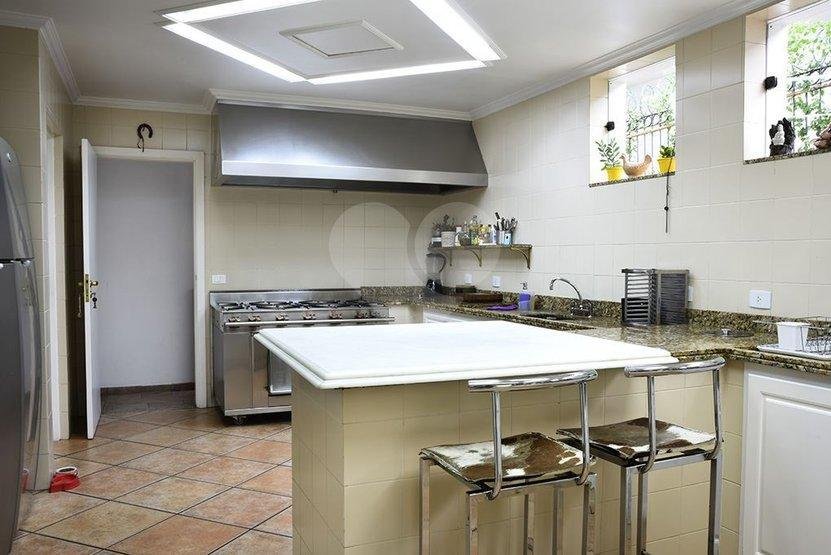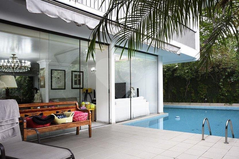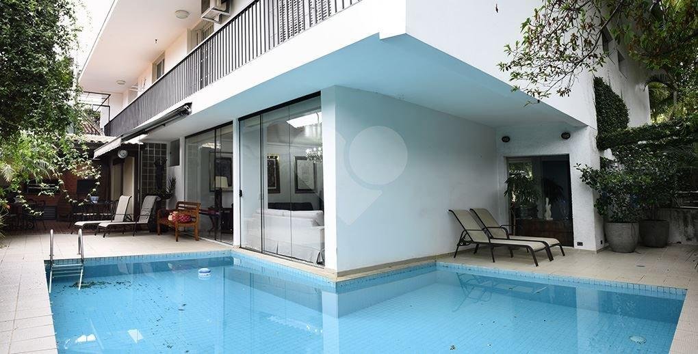 Requinte e privacidade no melhor do Pacaembu. 300 metros construído | | 500 metros de terreno 6 dormitórios |6 suítes / 3 vagas | copa, cozinha. lavanderia| piscina/ forno de pizza/ churrasqueira/ 2 qtos de empregada com WC/ sauna salão de festas foi transformado em ateliê todo piso frio em mármore travertino e espanhol, um luxo! Parte supeiror; quartos ricamente equipados com armários de altíssima qualidade , varanda em dois dormitórios, outras duas suítes com corredor de acessso. – Ref.: 57-IM288191