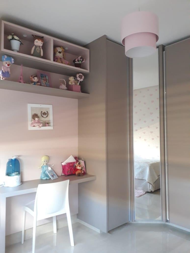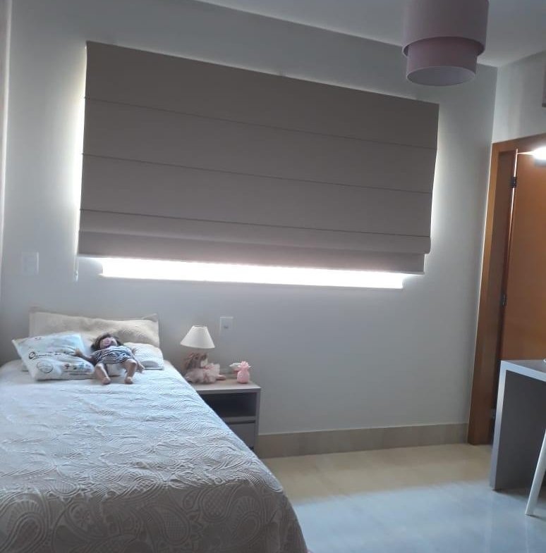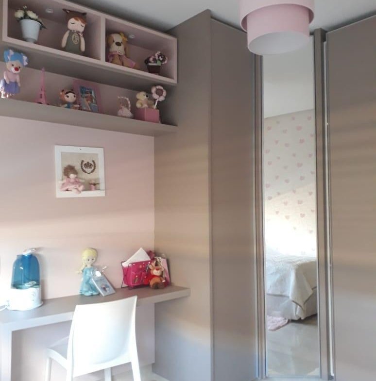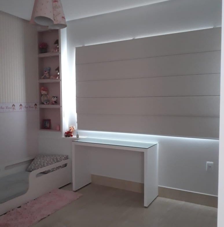 Imóvel repleto de armários planejados e papel de parede.
