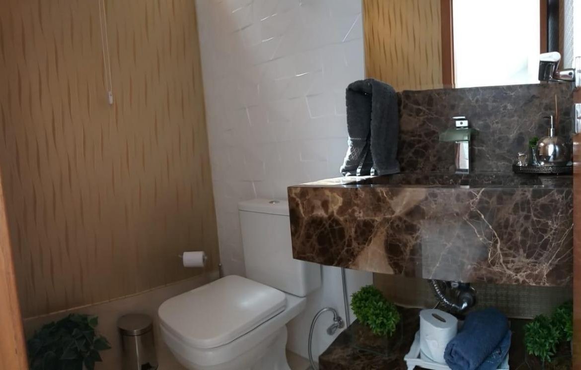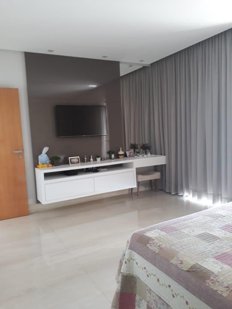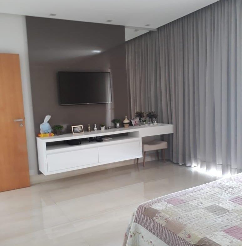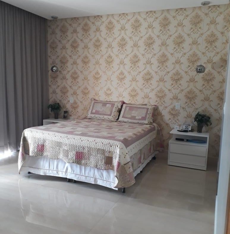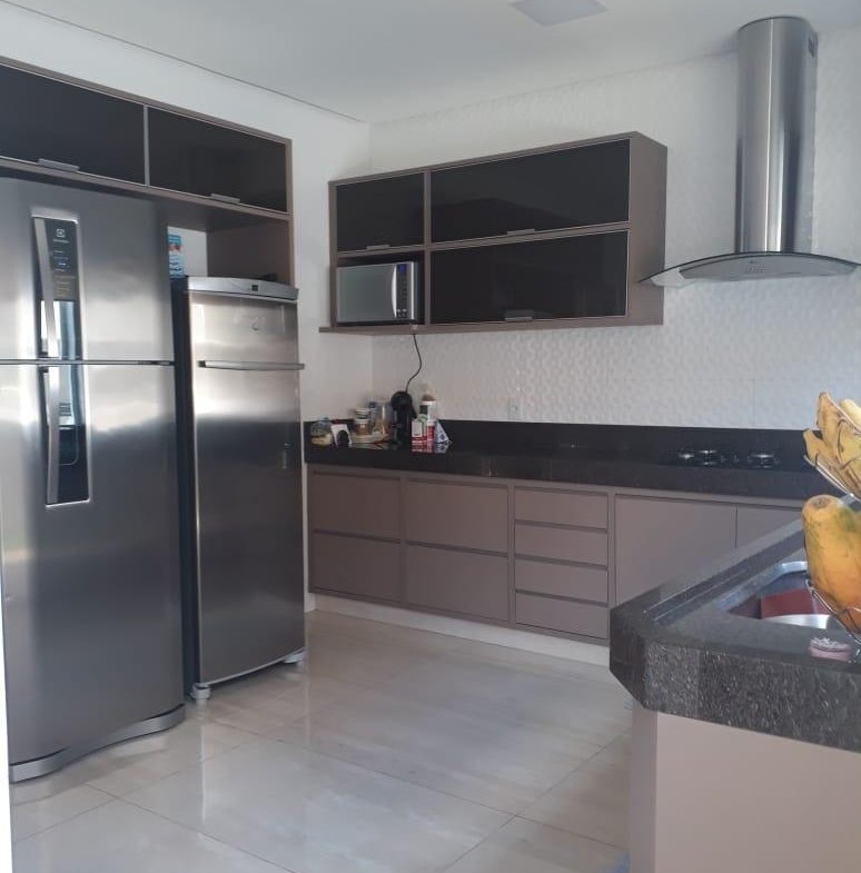 PISO INFERIOR: Garagem coberta espaçosa, sala 02 ambientes com pé direito duplo e gesso trabalhado, cortineiros iluminados, parede trabalhada no gesso 3D, lavabo com bancada em mármore importado, sala de tv aconchegante, sala de jantar com gesso trabalhado, cozinha, área de serviço com despensa e armários planejados, área gourmet espaçosa com mais uma cozinha e 01 banheiro.