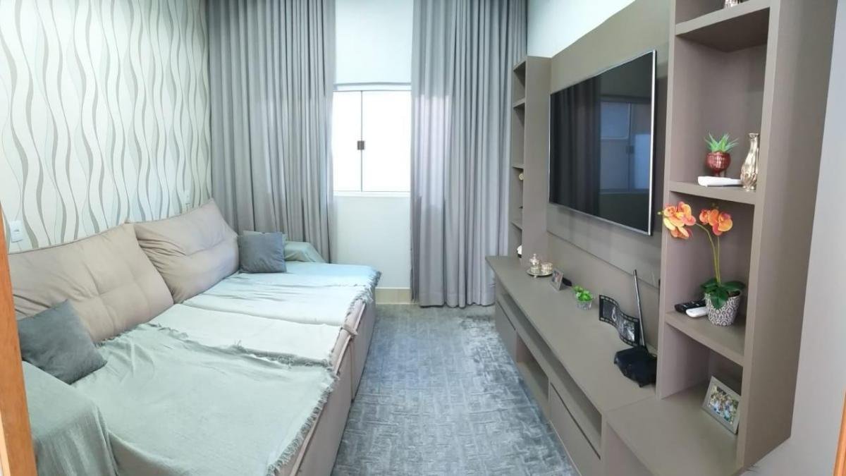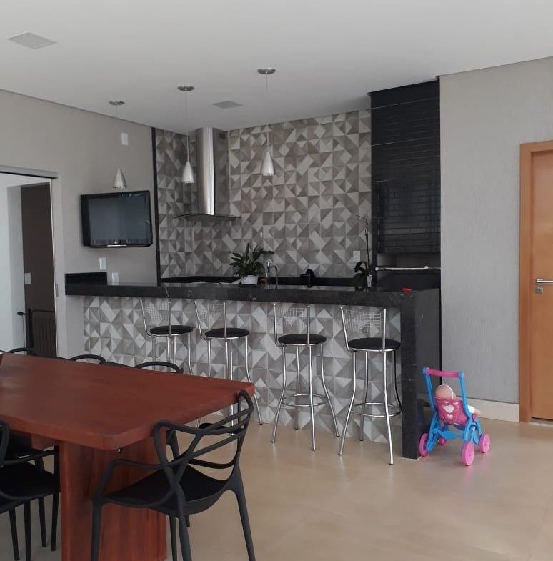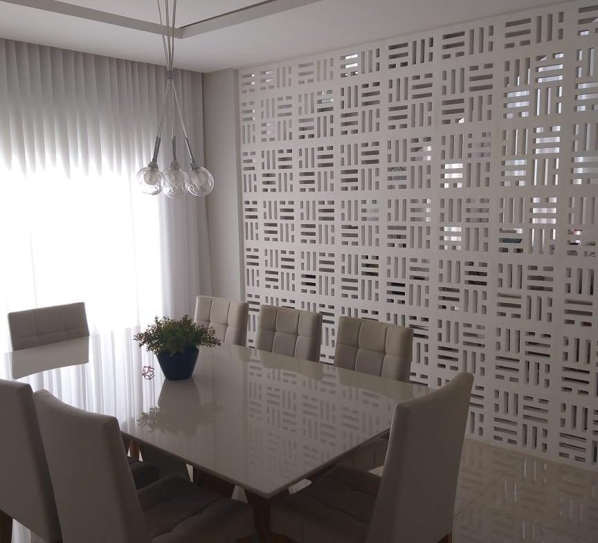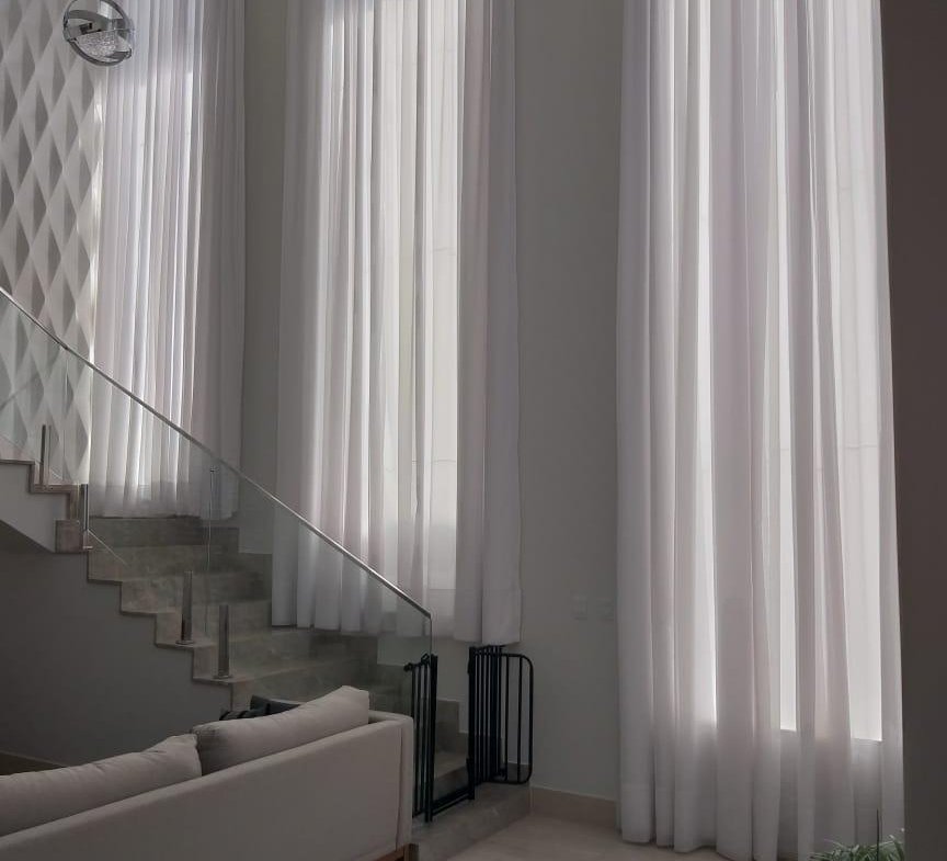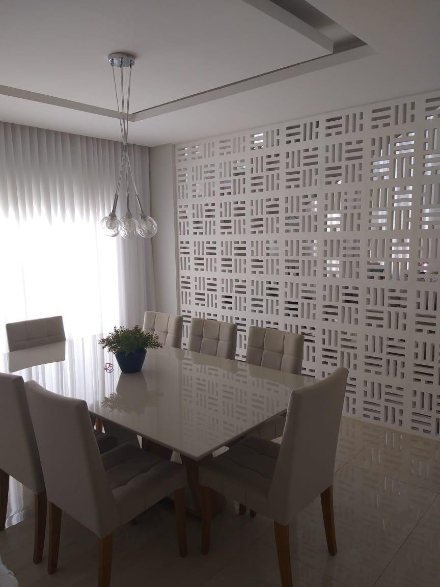 PISO INFERIOR: Garagem coberta espaçosa, sala 02 ambientes com pé direito duplo e gesso trabalhado, cortineiros iluminados, parede trabalhada no gesso 3D, lavabo com bancada em mármore importado, sala de tv aconchegante, sala de jantar com gesso trabalhado, cozinha, área de serviço com despensa e armários planejados, área gourmet espaçosa com mais uma cozinha e 01 banheiro.