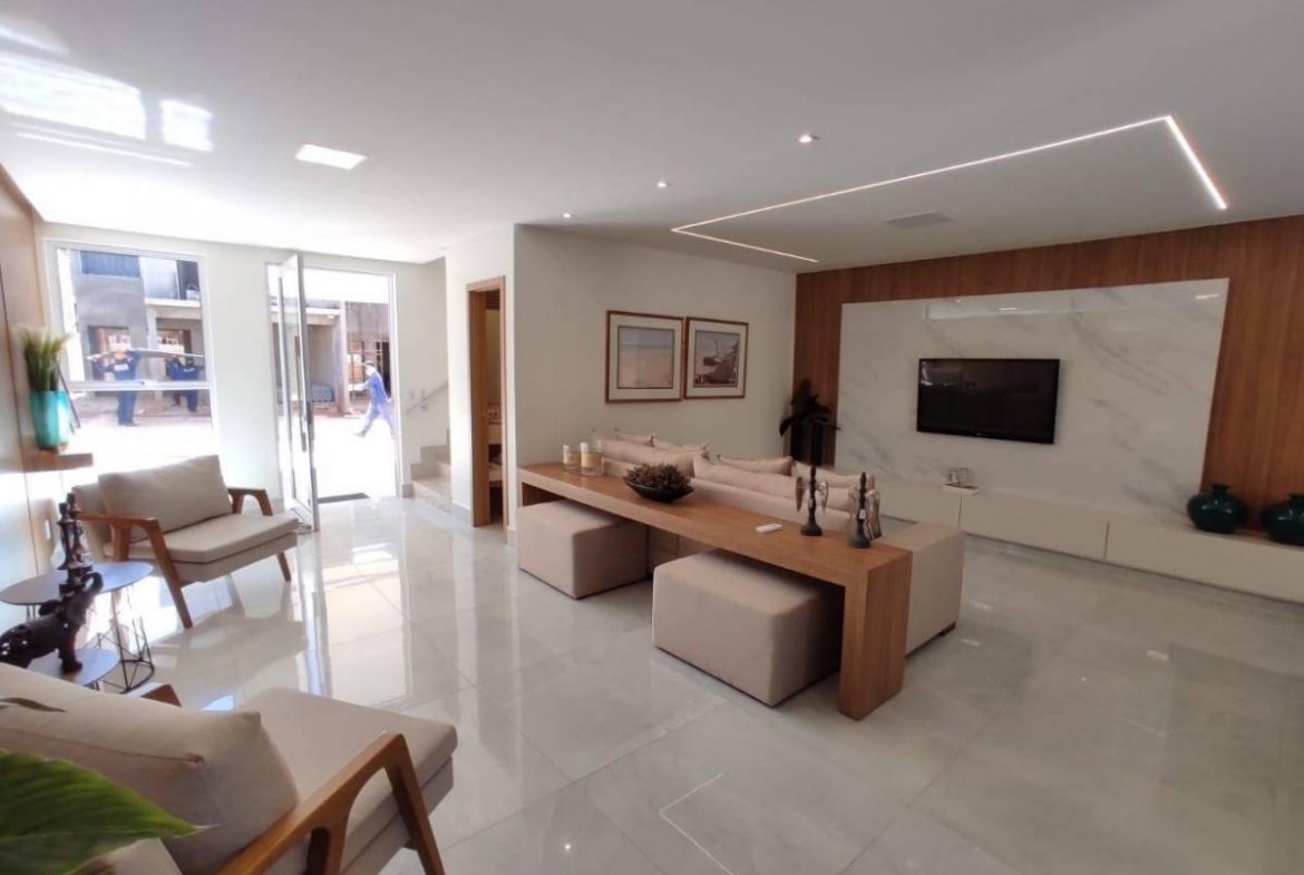 Sobrados com 4 suítes plenas acabamento premium sendo uma Suíte Master + Sala Íntima, na parte superior.