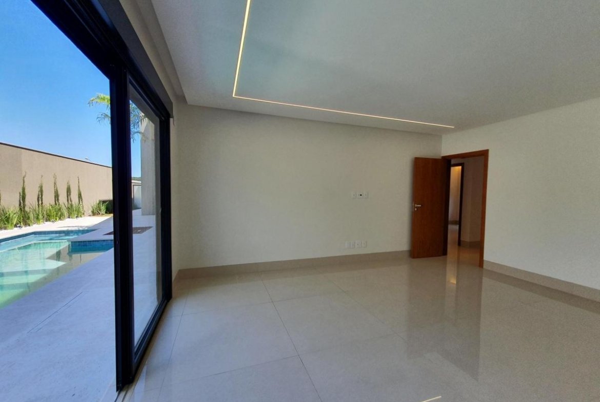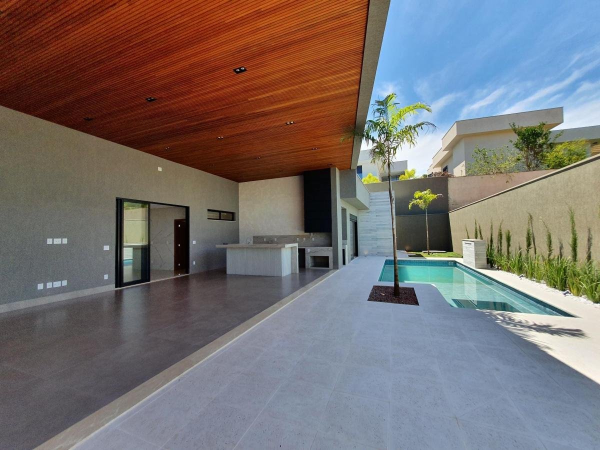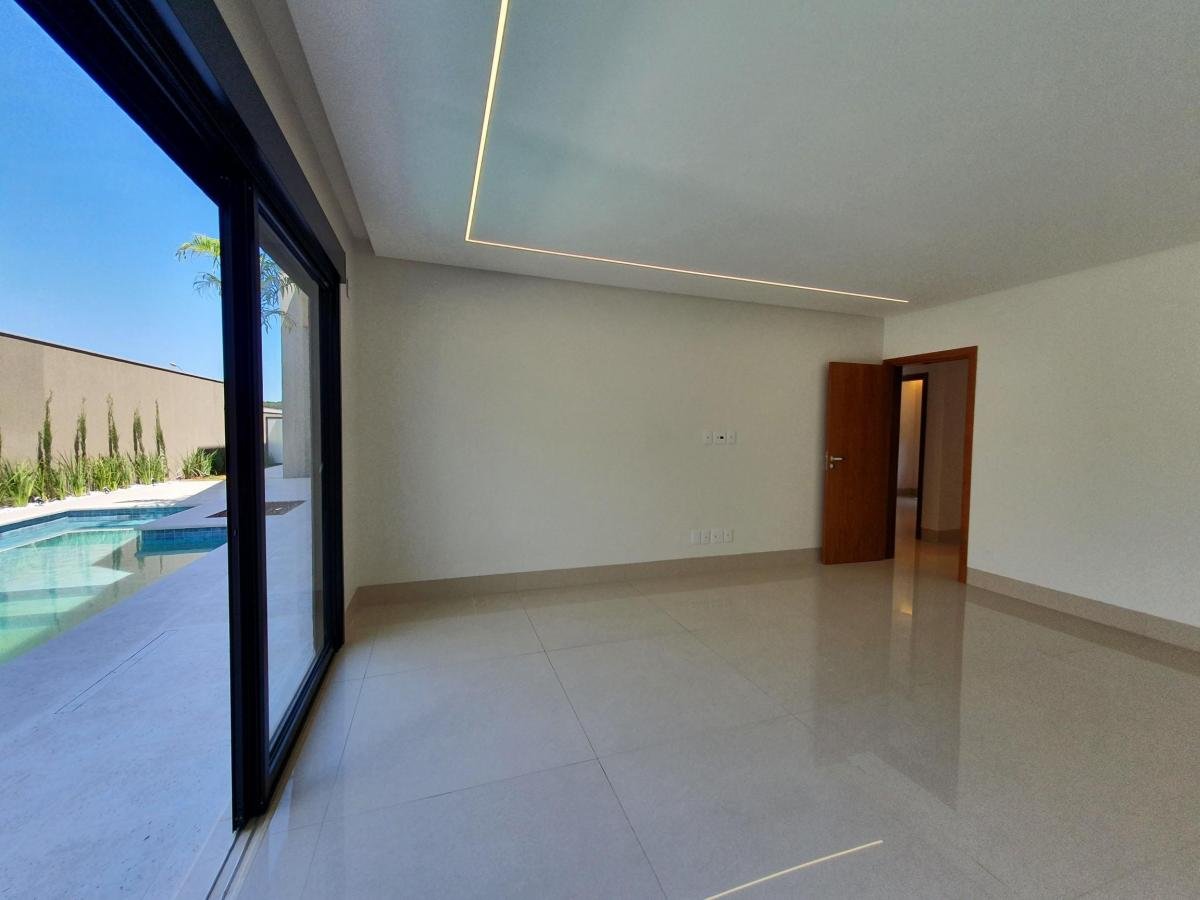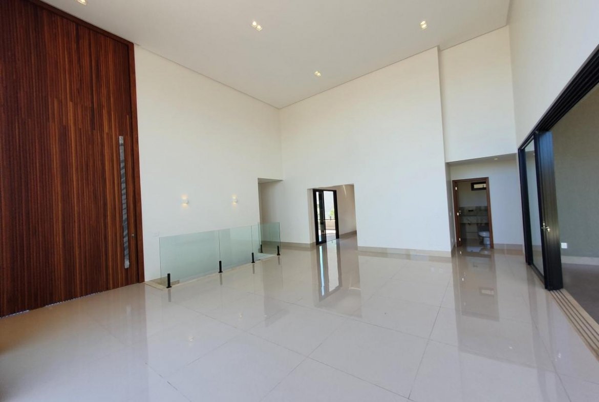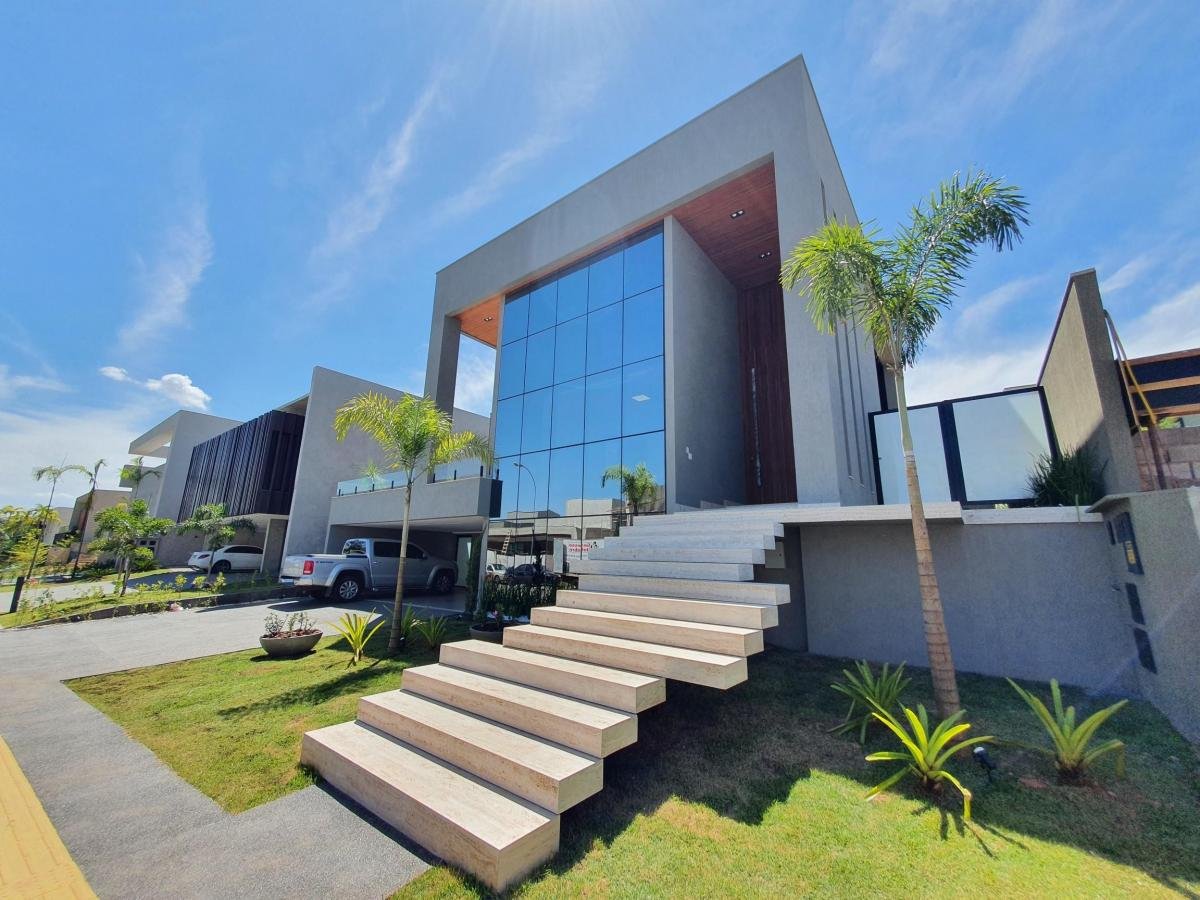Casa térrea, próxima à portaria, com 733 m² de terreno, 444 m² de área construída, fachada moderna e arrojada, 4 suítes plenas, sendo 1 master com closet e hidro, living 2 ambientes com pé direito duplo, escritório, home TV, lavabo, varanda com vista permanente, depósito, lazer com churrasqueira à carvão, piscina aquecida, imóvel será entregue com toda a parte de iluminação planejada.