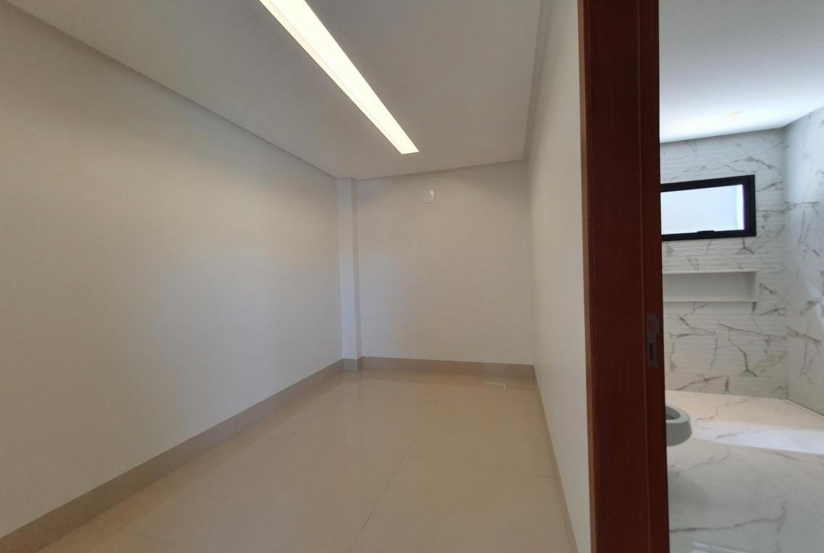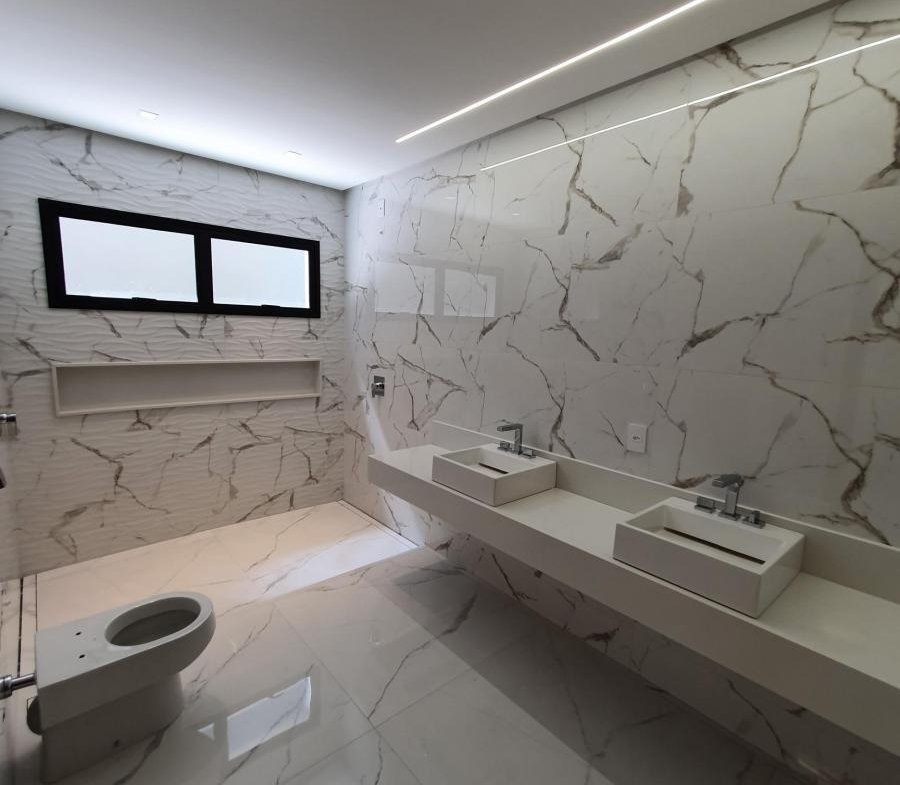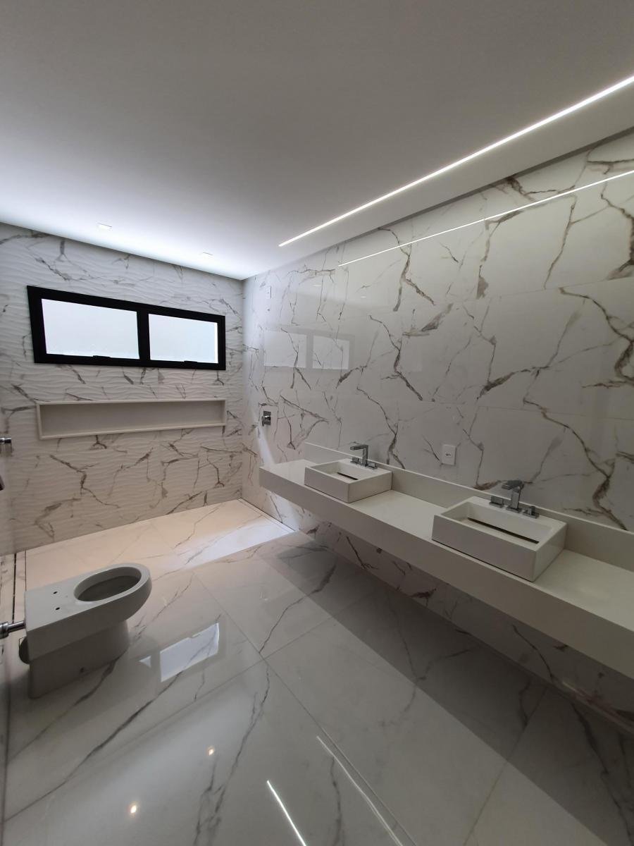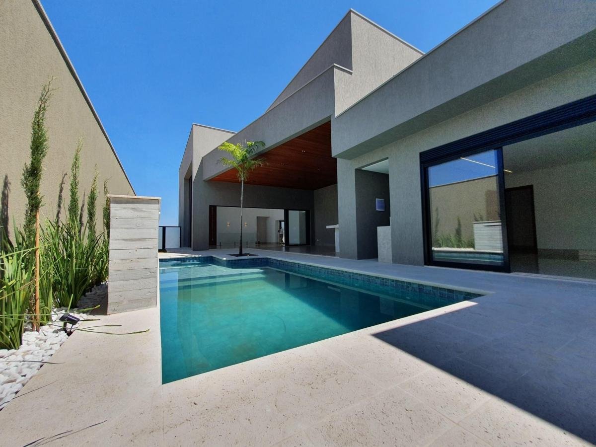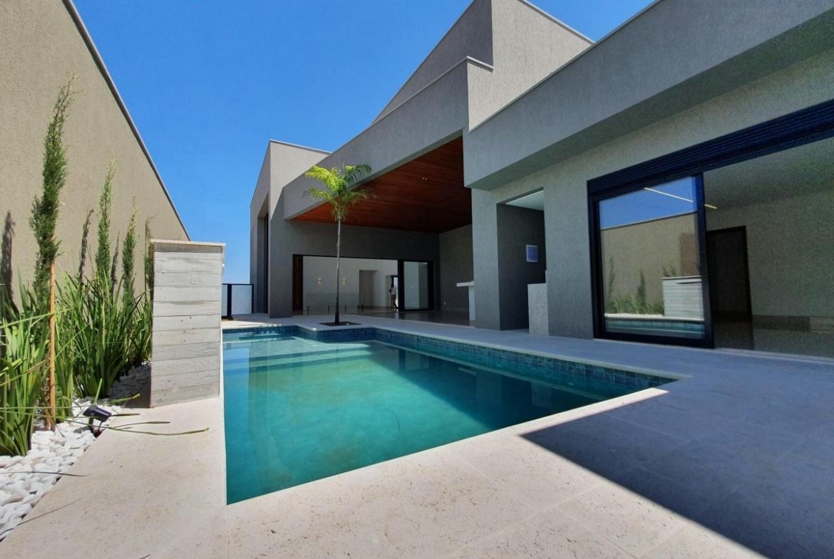 Casa térrea, próxima à portaria, com 733 m² de terreno, 444 m² de área construída, fachada moderna e arrojada, 4 suítes plenas, sendo 1 master com closet e hidro, living 2 ambientes com pé direito duplo, escritório, home TV, lavabo, varanda com vista permanente, depósito, lazer com churrasqueira à carvão, piscina aquecida, imóvel será entregue com toda a parte de iluminação planejada.