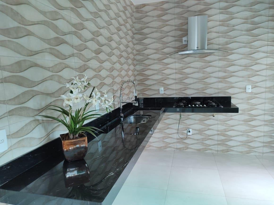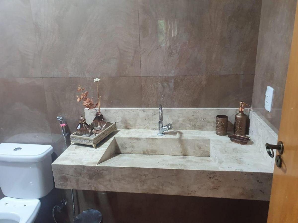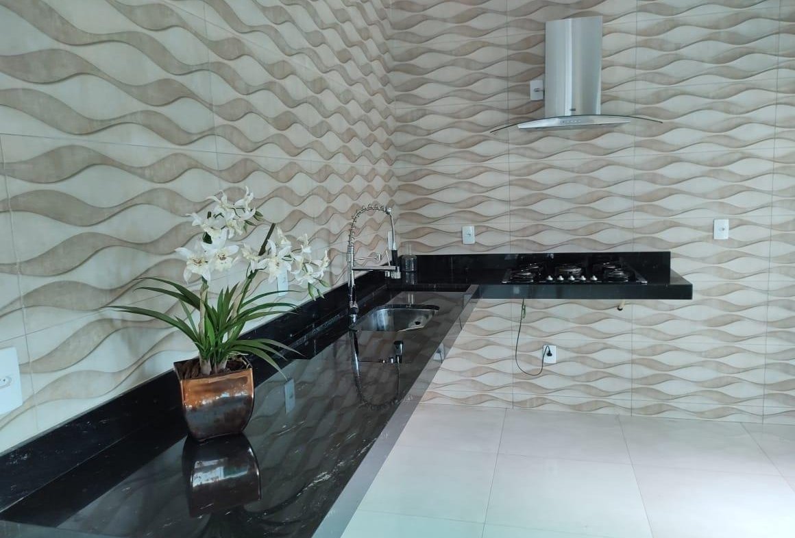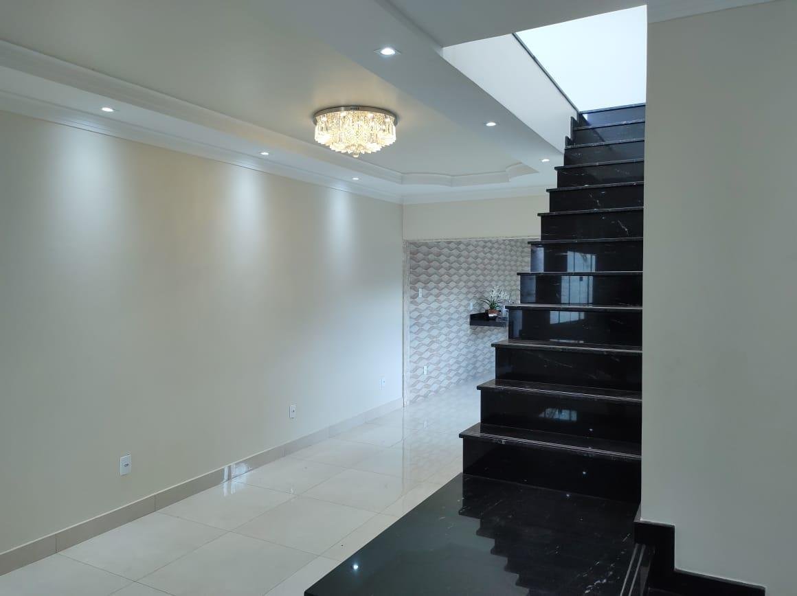 Sobrado de 275 m² de terreno e 230 m² de construção, 3 quartos sendo 1 suíte plena no 1⁰ pavimento com uma sala ampla e 2 quartos 2⁰ pavimento com outra sala menor toda no porcelanato(total de 5 quartos). 4 banheiros sendo 2 com Bancada de banheiro com cuba esculpida e Mármore Bege Bahia. Cozinha com coifa e fogão. Pedra da bancada cozinha e escada e o Preto Via Láctea. Laminação projetada. 4 vagas de garagem.