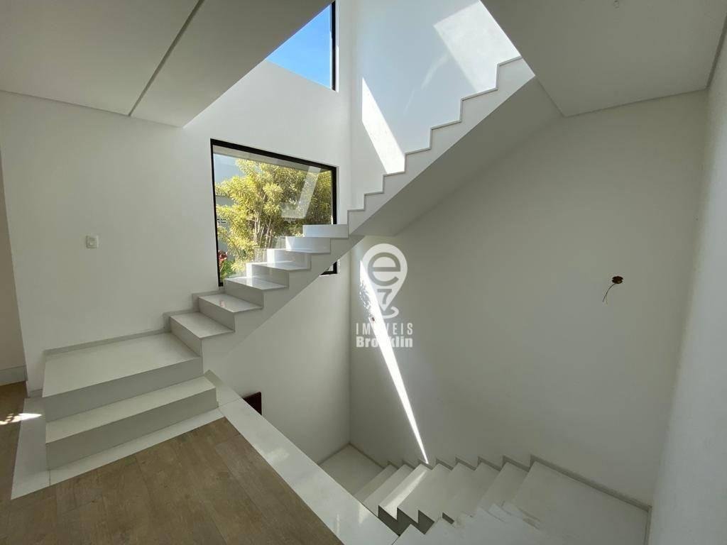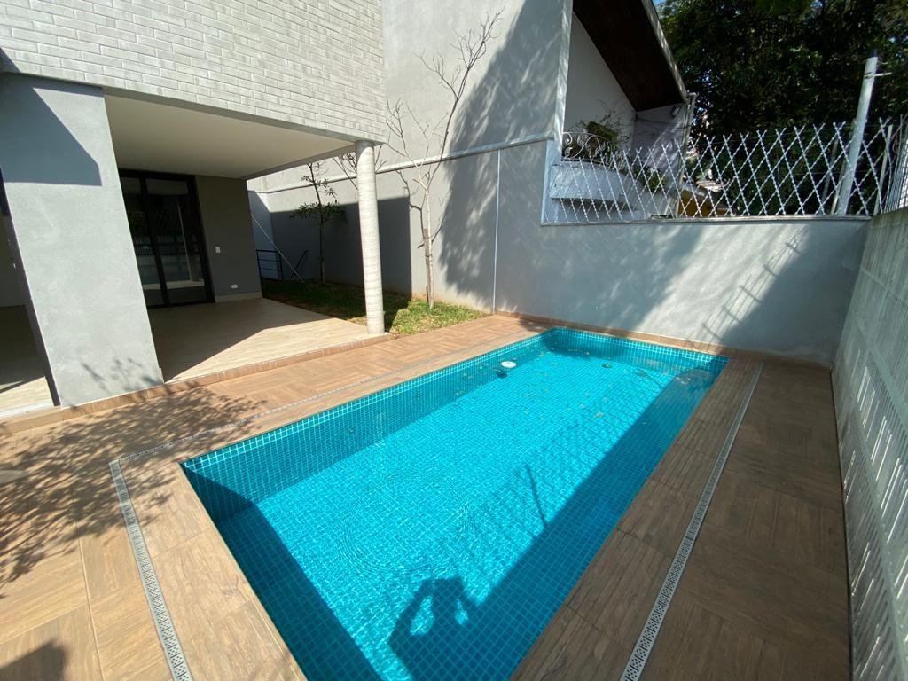 A casa conta com 272 m², espaços amplos e iluminados, jardim privativo com piscina, 3 suítes e 3 vagas de garagem.