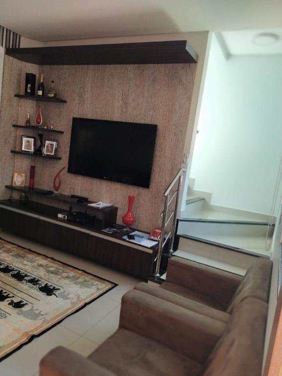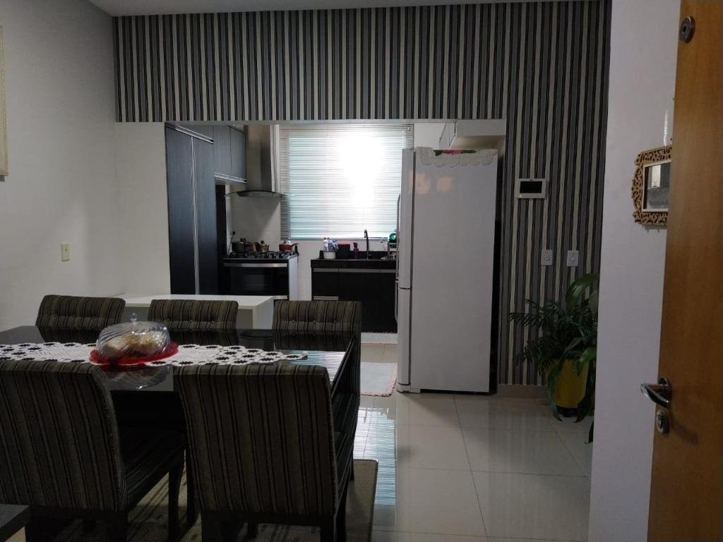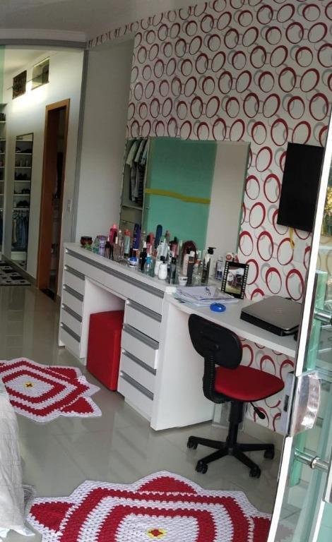 Sobrado com designer moderno, três suítes sendo a principal com varanda, closet, ar-condicionado, cabeceira, criados mudo em madeira, escrivaninha, penteadeira, banheiro com box, espelho e armário, suíte secundaria com varanda, ar-condicionado, cabeceira e criados mudos em madeira, guarda roupas, banheiro com box, espelho e armário, suíte para hospedes com guarda roupas, banheiro com box, espelho e armário; ampla sala com lavabo, persianas personalizadas, estante/painel em madeira, sala de jantar, cozinha tipo americana, rica em armários com abertura por pistões hidráulicos, pia em granito, lavanderia, área gourmet com churrasqueira, circuito de câmeras, cerca elétrica e concertina. Imóvel enfrente a praça criativa.