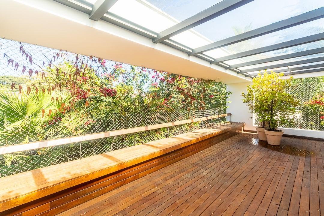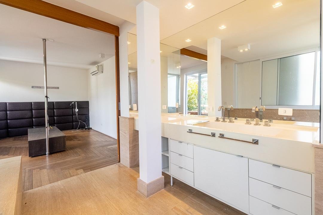 Casa nova super moderna projetada por profissionais de renome. O verde do jardim externo mescla com a decoração interna da casa, tornando o ambiente super diferenciado. O living conta com tem 3 ambientes, – sala com lareira, sala de jantar e sala de tv -, e lavabo. A casa tem 4 suítes, sendo uma delas a suíte master de 90m² com quarto, closet para homem, closet para mulher, banheiro em mármore todo envidraçado, com abertura para o terraço.