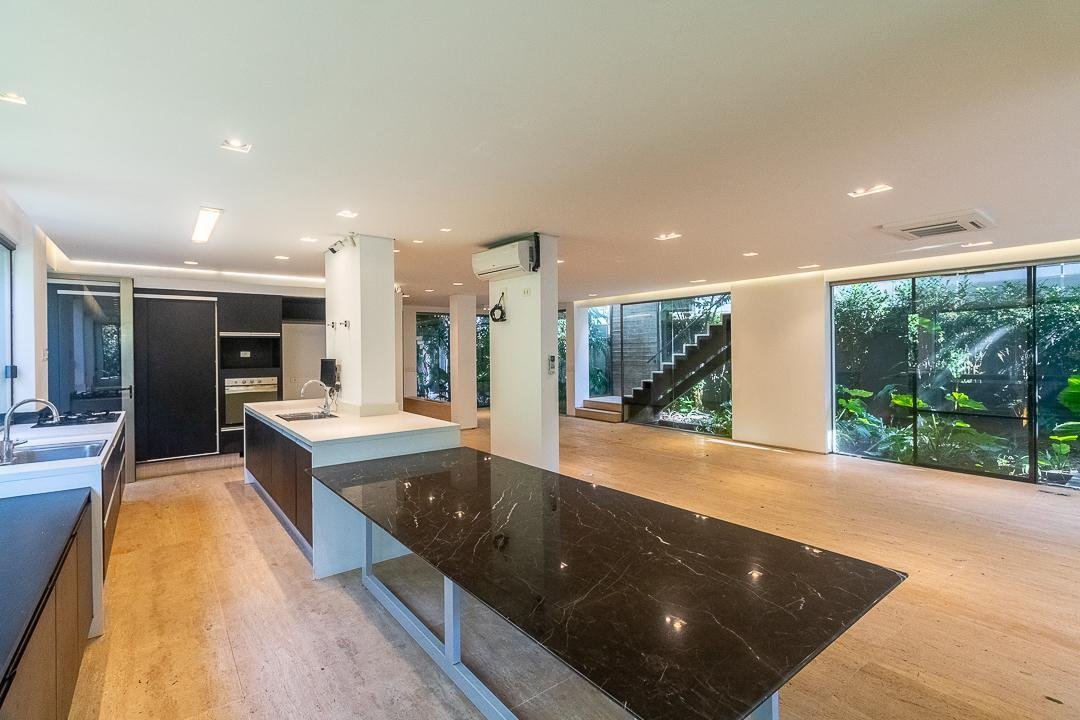 Todos os cômodos tem ar condicionado. A casa tem sistema de pressurização de água e irrigação do jardim. Projetada pela arquiteta Fabio Onuki, a paisagista Martha Gavião e decoradora Silvia Aguiar.