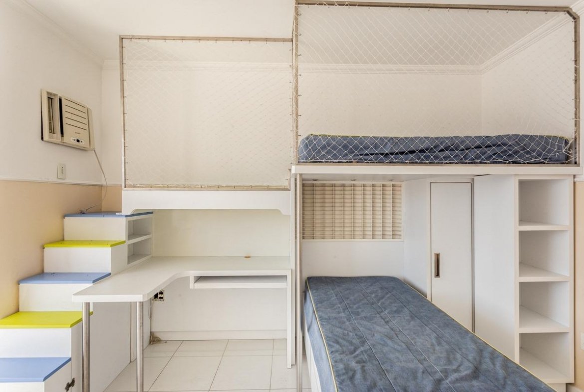 Condomínio com churrasqueira, elevador, estacionamento para visitantes, piscina adulto e infantil, playground, portaria, quadra de esportes e salão de festas.