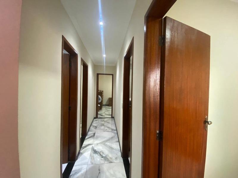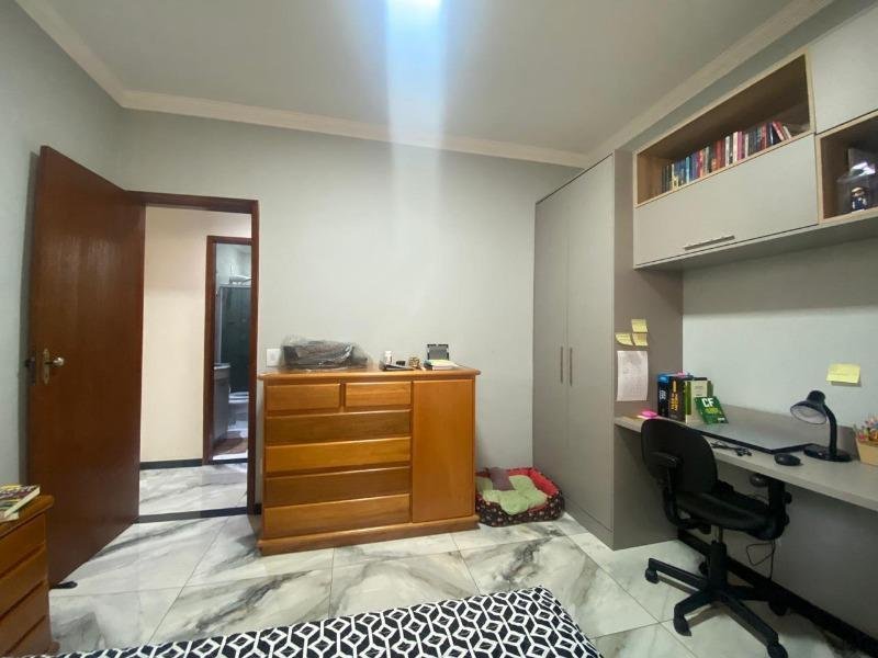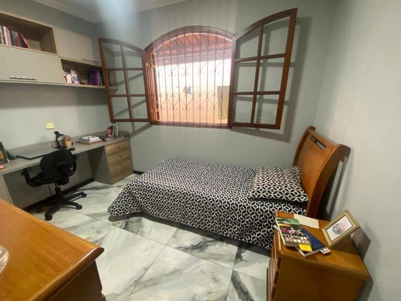Casa conta com 3 (três) quartos sendo o principal uma suíte ampla, um quarto de solteiro com armário planejado e mais quarto transformado em escritório, banheiro social,