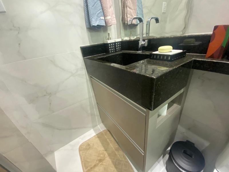 (todos os banheiros com acabamento em porcelanato, pias em granito e revestimento até o teto)