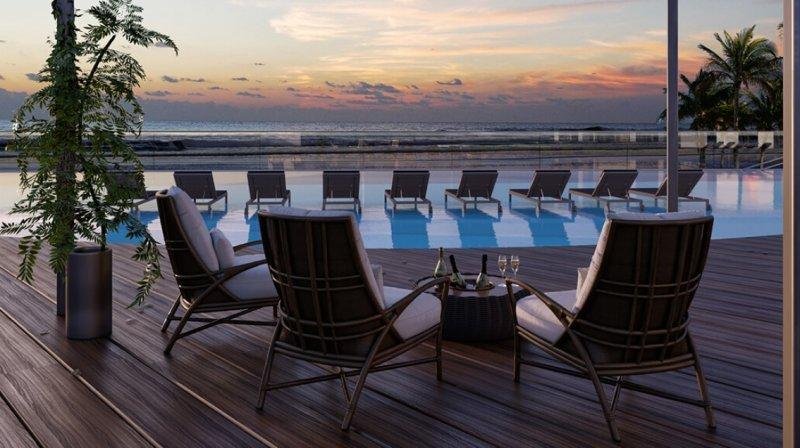Com uma estrutura de resort à beira-mar, você desfruta de uma área de lazer completa com mais de 30 itens, como fitness e piscina de borda infinita.