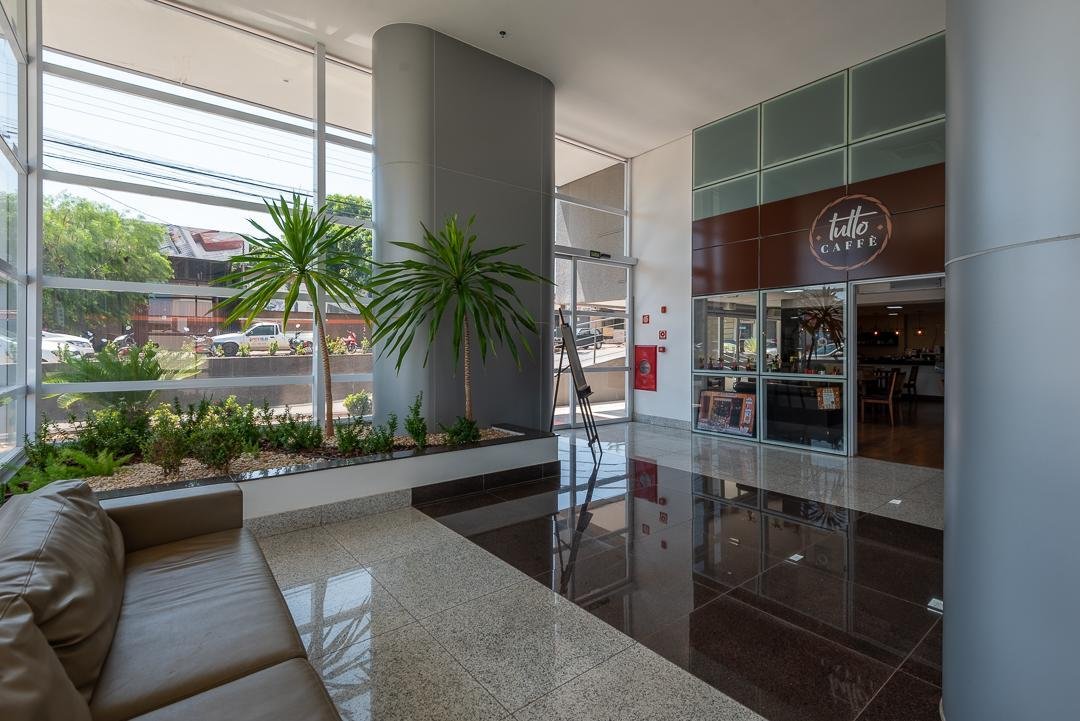 Recepção com lounge de espera, próximo aos melhores bairros da cidade, baixo valor de condomínio e café com espaço para lanche e lazer.