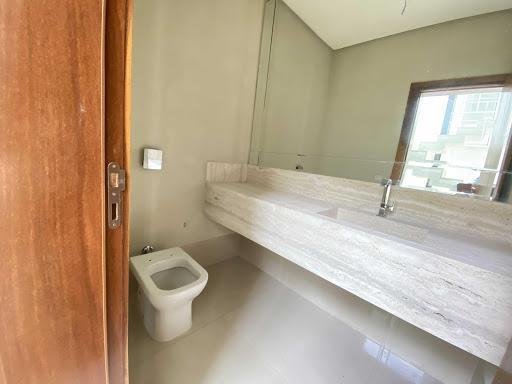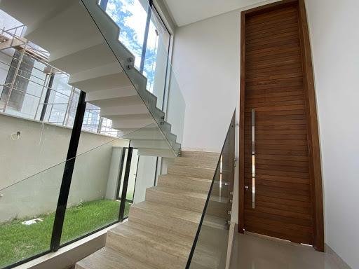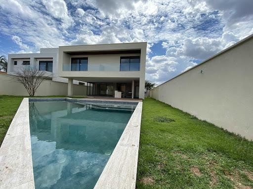 Sobrado de alto padrão com 4 suítes, sendo uma master com banheira de hidromassagem, duas cubas e duas duchas. Sala com pé direito duplo em dois ambientes, lavabo, home TV, cozinha individualizada, dispensa, área de serviço, DCE, espaço gourmet com churrasqueira e bancada, banheiro para área molhada, piscina aquecida e com iluminação. Previsão para elevador, aquecimentos solar, torneiras monocomando em todos os ambientes e também nos chuveiros, rede de ar condicionado instalado em toda casa, bancadas e nichos esculpidas em Crema Marfil, escada em Travertino Romano, projeto de paisagismo e irrigação automatizada.