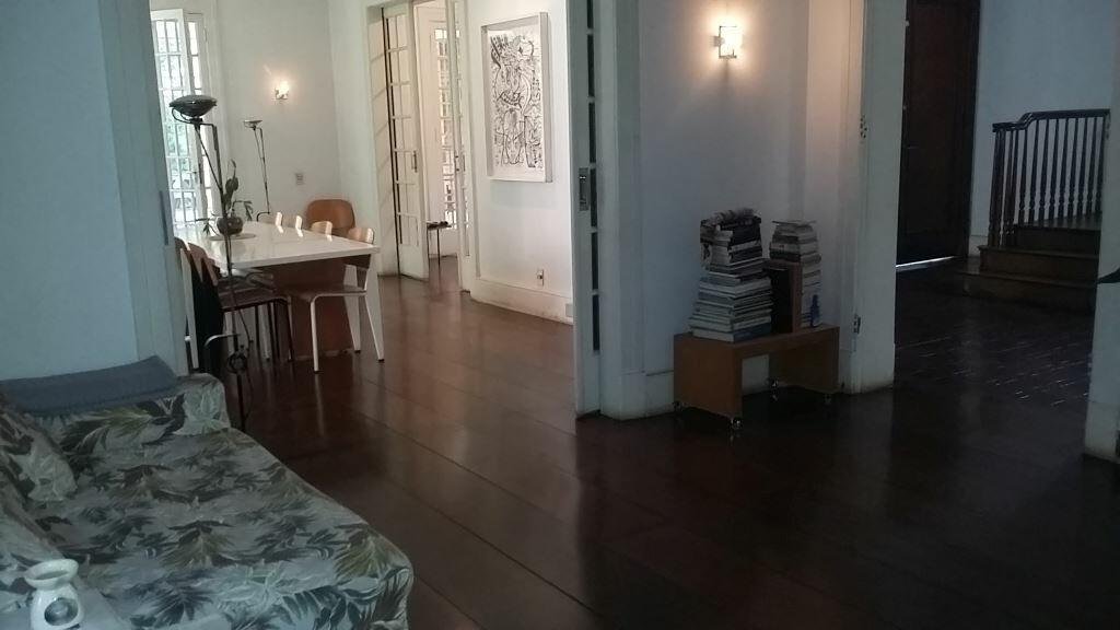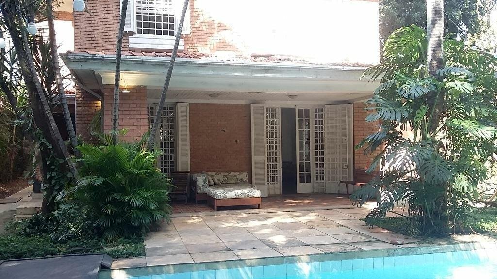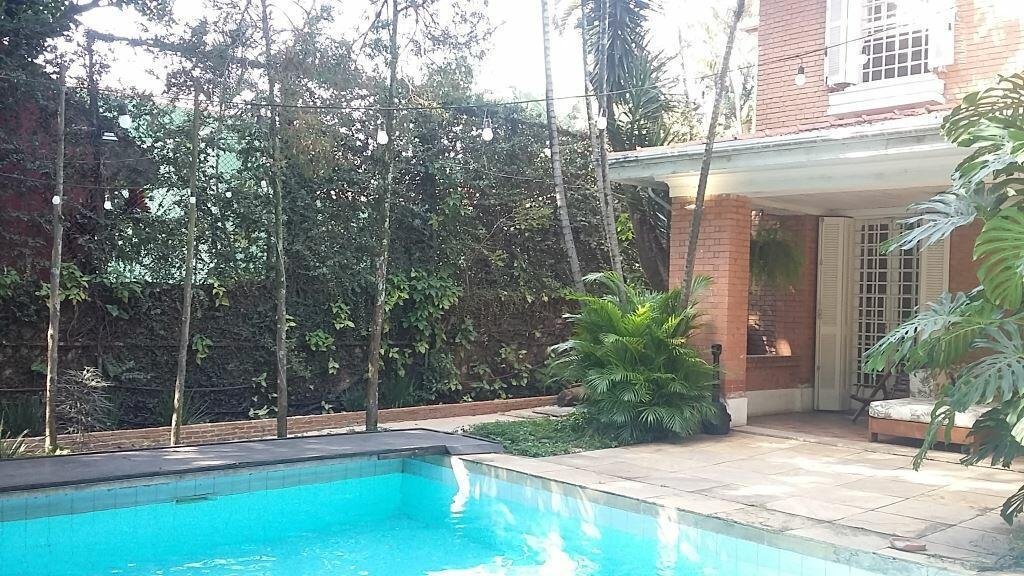 JARDIM AMÉRICA – Sobrado espetacular com 2 pavimentos. Localização invejável!!! Show de residência! Possui 480 m² de área construída. Iluminada, arejada, pé direito alto, típico das construções da época muito valorizadas atualmente. Grande potencial para você colocar o seu perfil! Show de localização!!! Rua muito procurada. Espaço mínimo para 3 carros. Piso inferior: piscina, varanda frontal à piscina. Living para 2 amplos ambientes, lareira, escritório, lavabo, sala de almoço. Cozinha ampla com despensa. Escada com corrimão em madeira maciça muito bonita. Piso superior: 5 dormitórios sendo 1 suite. Piscina circundada por árvores. Belíssimo quintal com edícula super moderna, toda envidraçada. com ar condicionado em todos os ambientes. Muitas árvores tornando o espaço externo bonito e agradável. Rua charmosa, arborizada e muito procurada!!! – Ref.: 345-IM245531